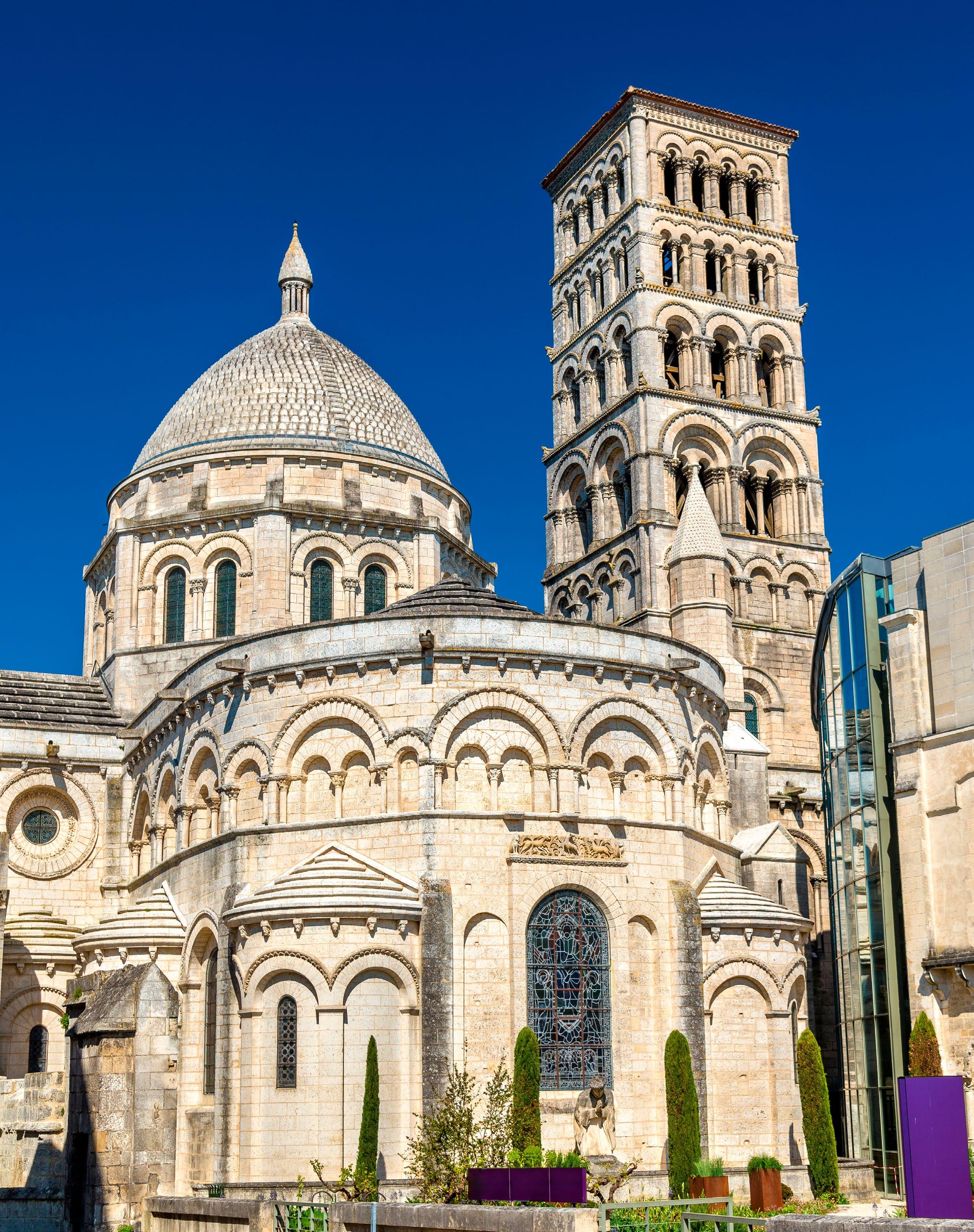 The 12th century Romanesque Cathédrale Saint-Pierre (right) was embellished by the architect who created the Sacré-Cœur Basilica in Paris. Behind the cathedral is the Musée d’Angoulême, with 1620th century works of art, dinosaur bones from important nearby fossil beds of Angeac-Charente and much more.
