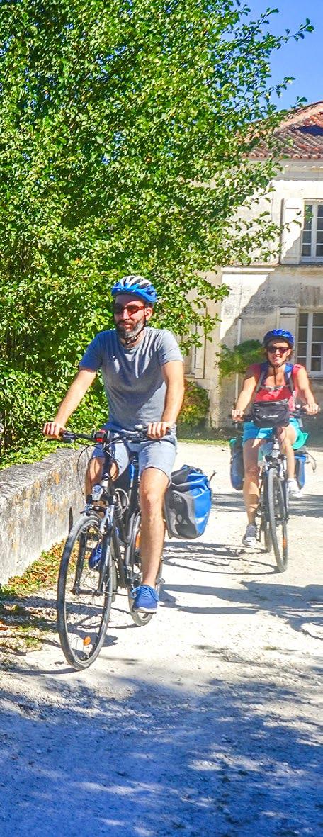 If you really want to spread your wings and see even more sights, La Flow Vélo is a new national ‘slow tourism’ cycle route running for almost 290km from Thiviers (Dordogne) to the Île d’Aix. En-route there are connections to onward longdistance EuroVelo cycle routes all the way to Trondheim (Norway) and Saint-Jacques de Compostéla (Spain), not to mention the famous Vélodyssée linking the UK with the Basque Coast. Of course, if you really fall in love with the sense of away-from-it-all escapism which cycling brings, why not plan a return visit to experience your favourite rides when the summer crowds have gone? Chances are you’ll have the marked trails all to yourself, apart from a few local riders making the most of the perfect peace and quiet. Magical!