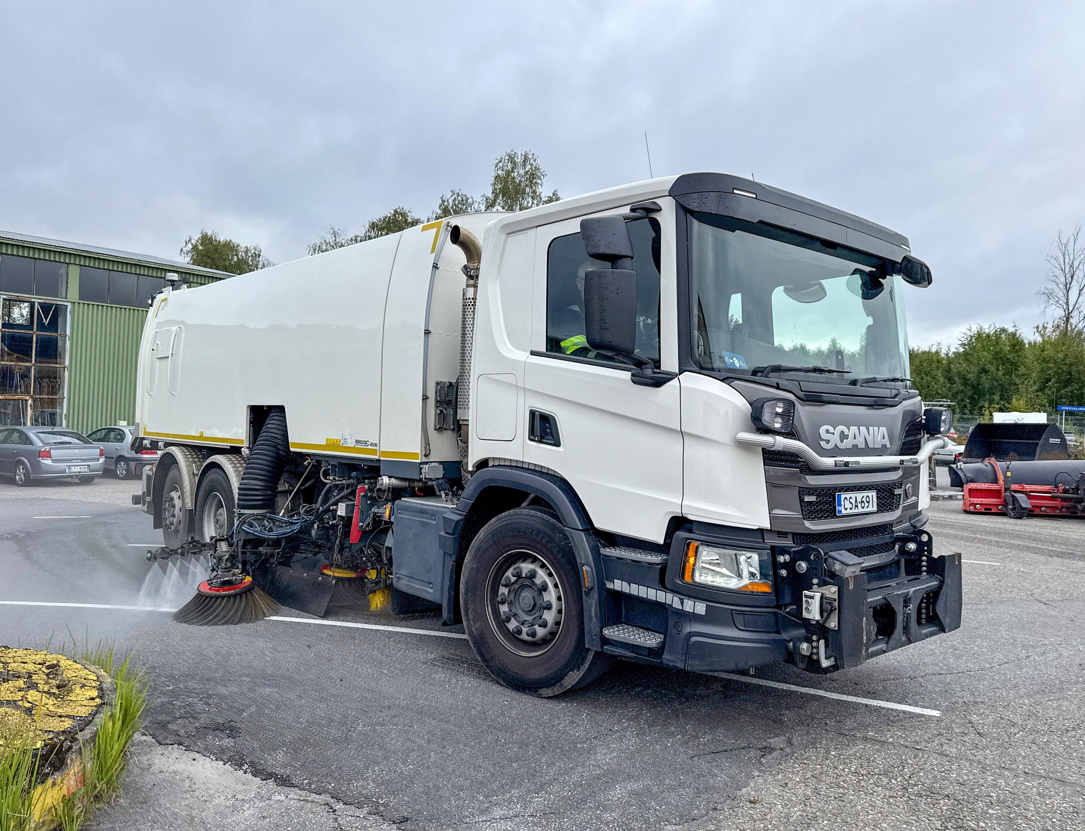 olen ajanut imulakaisuautoa. Tämä on minun aikanani kolmas Brock, joka tulee taloon. Tämäkin hankittiin kilpailutuksen kautta, ja Scanian alustalle rakennettu auto on ollut erittäin sopiva käyttöön, kertoo Aki Partanen Vaasan kaupungin kunnossapidosta.