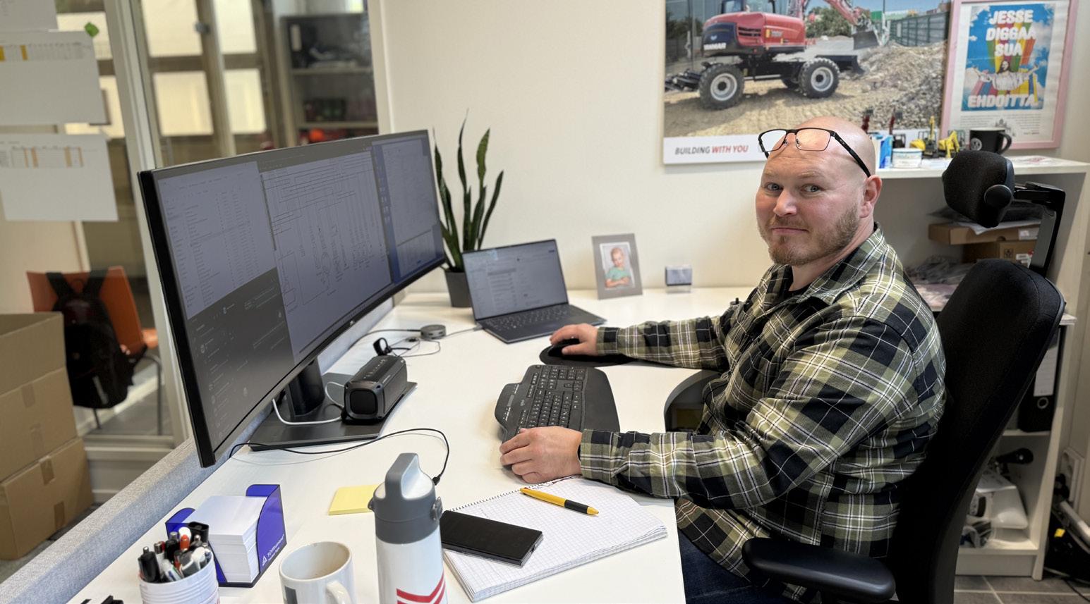 Mikko Ruotsalainen tekee konekauppaa KH-Koneet Groupin Jyväskylän toimipisteessä.