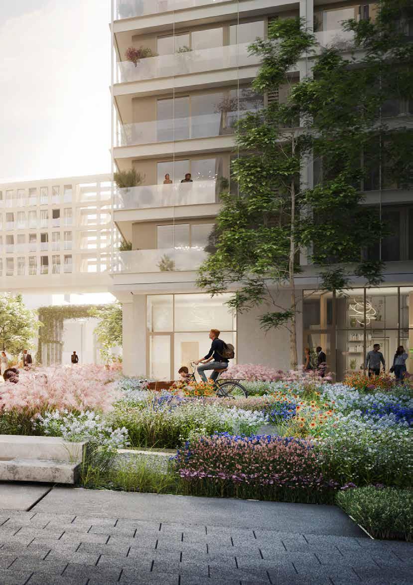‘De unit wordt met veel groen afgescheiden van de trottoirs wat een beschut karakter creëert’