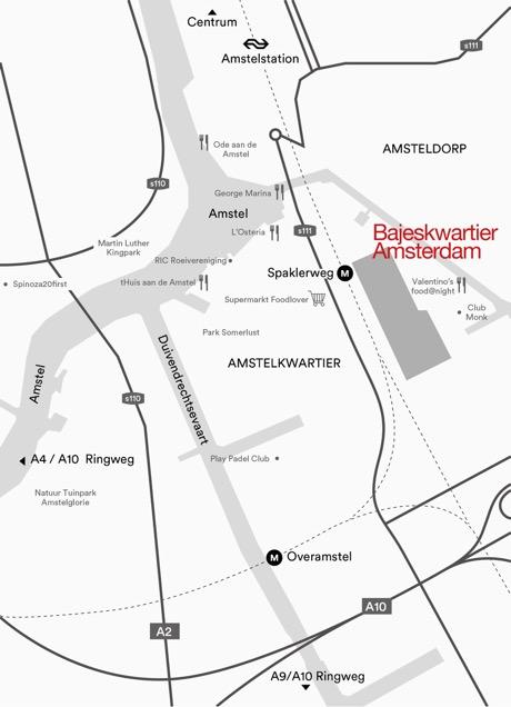 Hier vind je het short stay Hotel en Café Jansen, de middelbare school Spinoza20firstlyceum, een sportha en Bajesdorp.