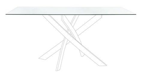 Gambe in acciaio verniciato a polvere epossidica. Piano in ceramica (5mm) con supporto in vetro temperato (6mm). Gambe da assemblare. / Epoxy powder coated steel legs. Ceramic top (5mm) with tempered glass support (6mm). Legs to be assembled.