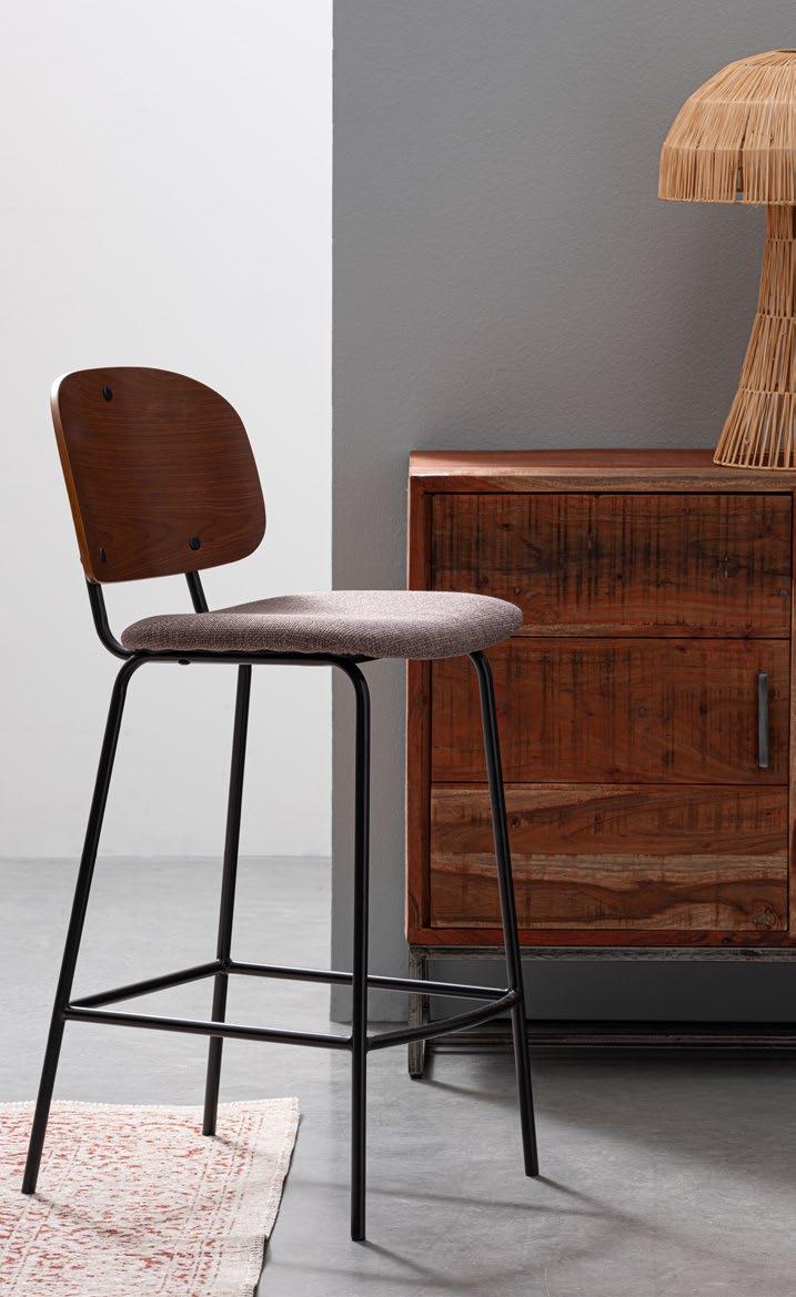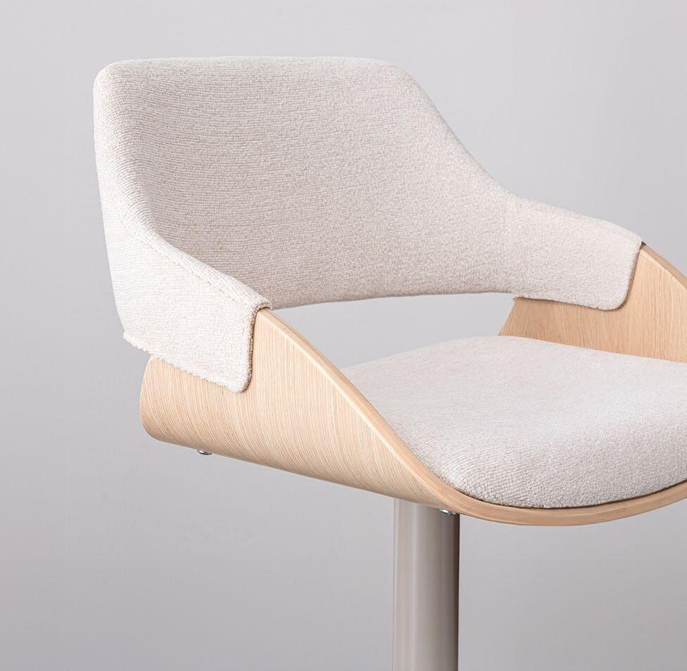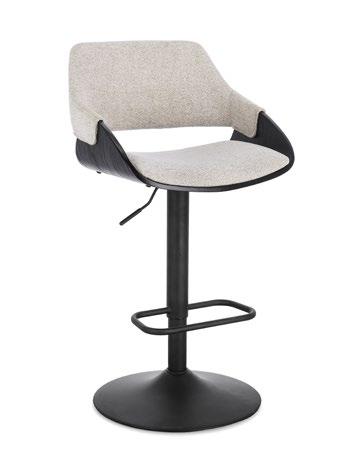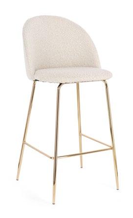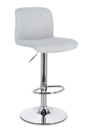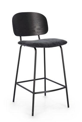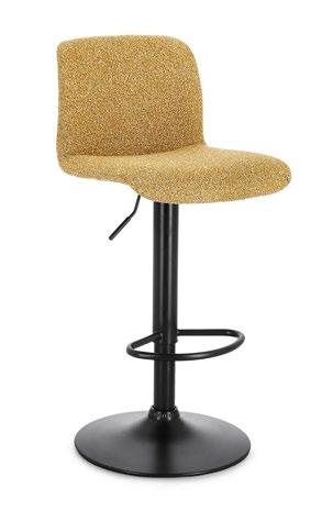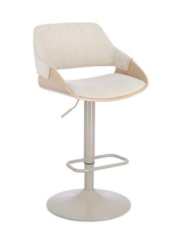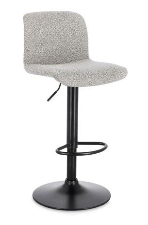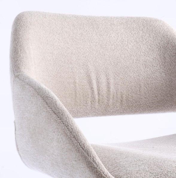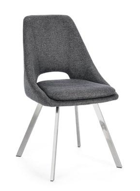 Seduta in compensato con imbottitura in schiuma poliuretanica. Rivestimento in 100% poliestere. Girevole 360° con meccanismo di ritorno. Gambe in acciaio verniciate a polvere epossidica. Gambe da assemblare. / Seat in plywood with polyurethane foam padding. Cover in 100% polyester. 360° Rotatable with return mechanism. Legs in epoxy powder coated steel. Legs to be assembled.