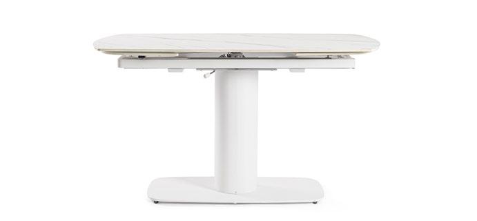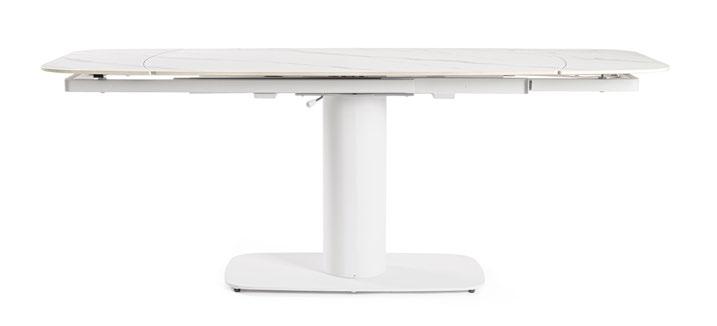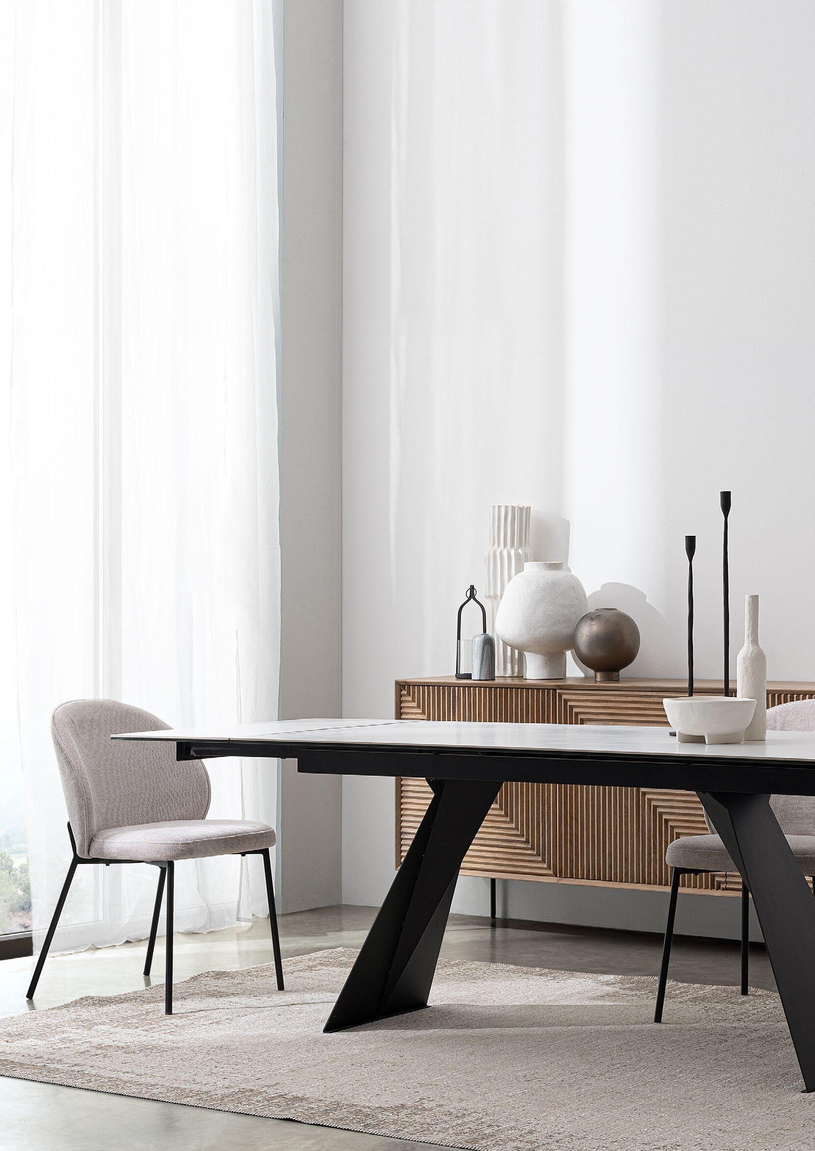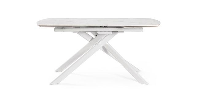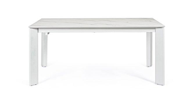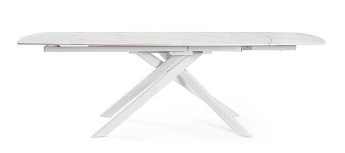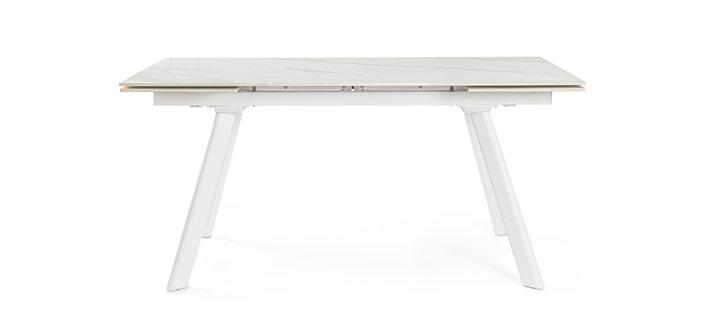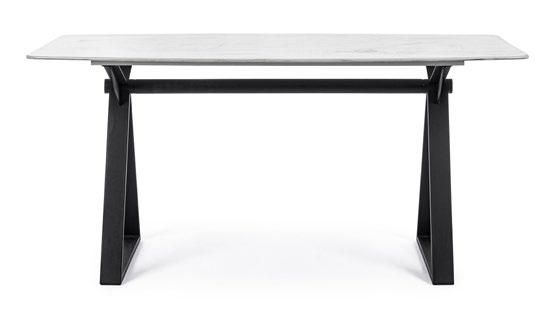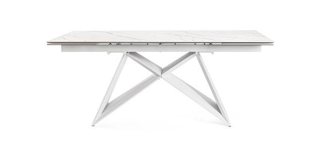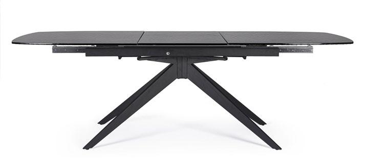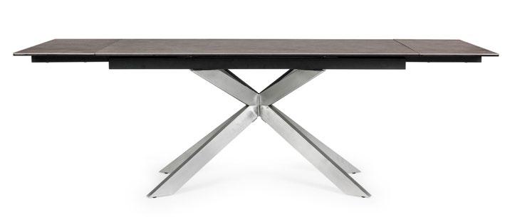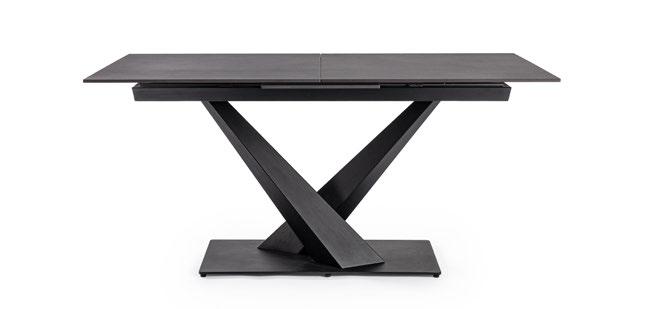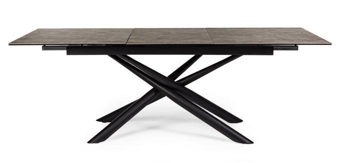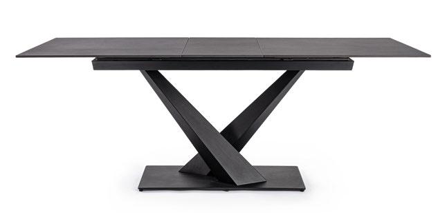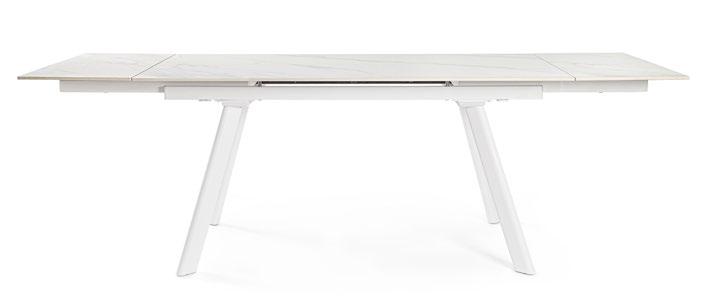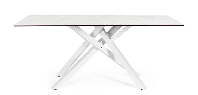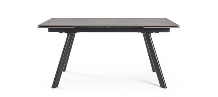 Gambe in acciaio verniciato a polvere epossidica. Piano in ceramica (5mm) con supporto in vetro temperato (6mm). Gambe da assemblare. / Epoxy powder coated steel legs. Ceramic top (5mm) with tempered glass support (6mm). Legs to be assembled.