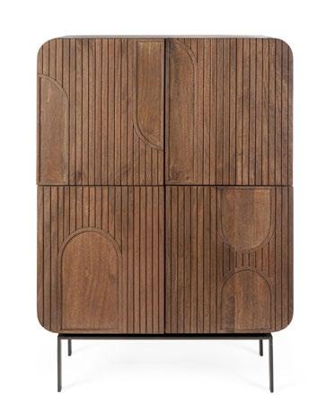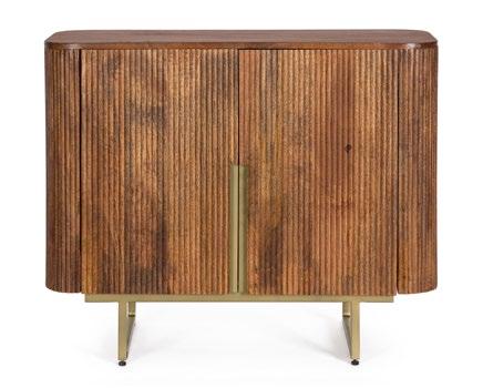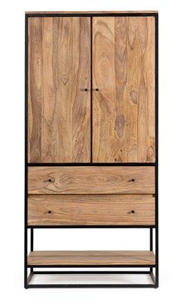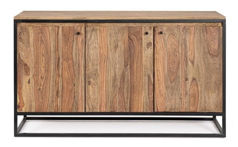 Struttura in legno sheesham e acciaio verniciato a polvere epossidica, schienale in compensato. Finitura acrilica protettiva. Maniglie in acciaio. / Sheesham wood and steel frame epoxy powder coated, back in plywood. Protective acrylic finishing. Steel handles.