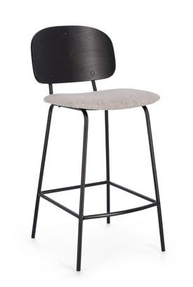Seduta in compensato con imbottitura in schiuma poliuretanica. Rivestimento in 100% poliestere. Gambe in acciaio verniciate a polvere epossidica. Gambe da assemblare. / Seat in plywood with polyurethane foam padding. Cover in 100% polyester. Steel legs epoxy powder coated. Legs to be assembled.