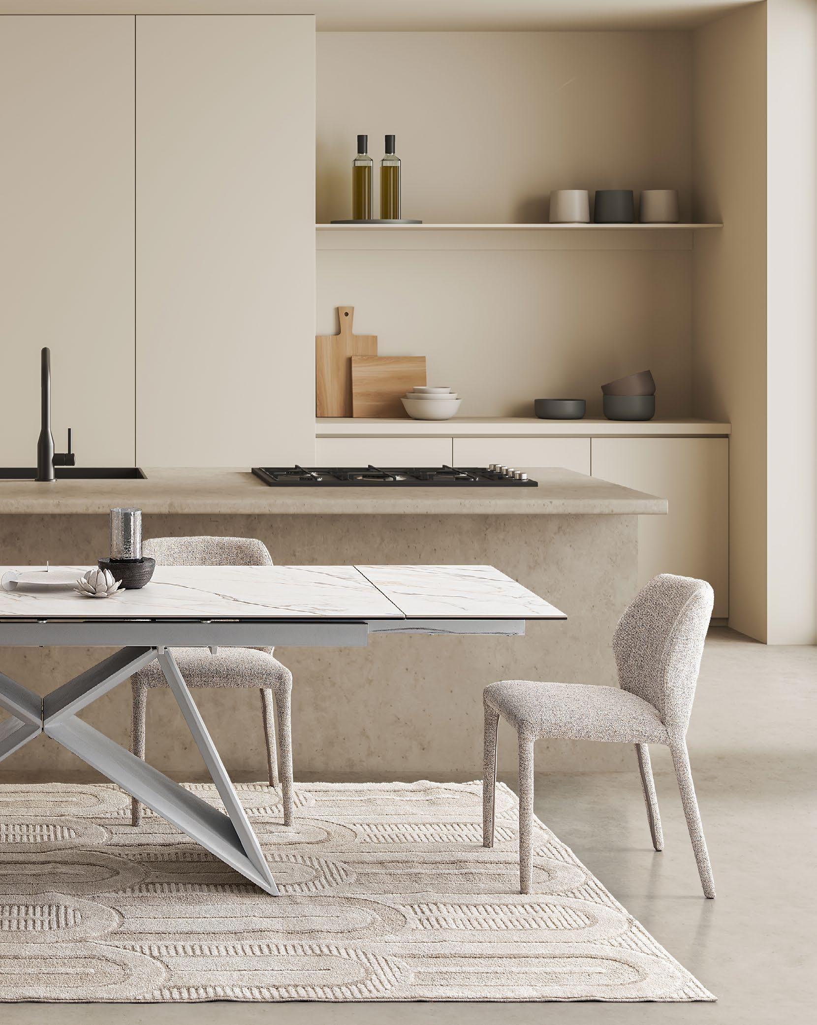 I trattamenti che esaltano e connotano. Il vetro nero bocciardato, il legno riciclato. E infine la tecnologia: che facilita, agevola, apre a possibilità sempre nuove. Tavoli che si trasformano, meccanismi di apertura e chiusura semplificati: l’innovazione apporta quella versatilità sempre più richiesta dalle esigenze contemporanee.