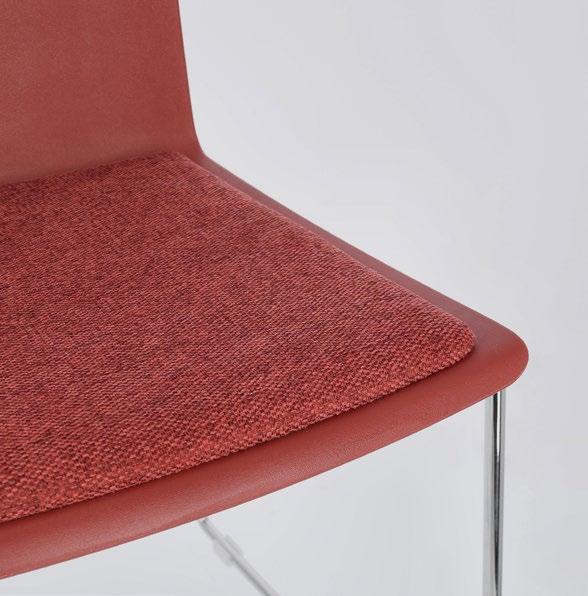 Gambe in acciaio verniciato a polvere epossidica. Seduta in polipropilene (PP) rivestito in similpelle. Gambe da assemblare. / Epoxy powder coated steel legs. Seat made of polypropylene (PP) and covered with imitation leather. Legs to be assembled.