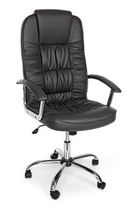 3, 4, Base in acciaio cromato ø60 cm. Ruote in nylon. Seduta e schienale imbottiti e rivestiti in similpelle. Braccioli in plastica (PP) con parte superiore rivestita in similpelle. Altezza regolabile. Da assemblare | ø60 cm chromed steel base. Nylon wheels. Filled seat and back covered in imitation leather. Plastic (PP) armrests with upper part covered in imitation leather. Adjustable height. To be assembled.