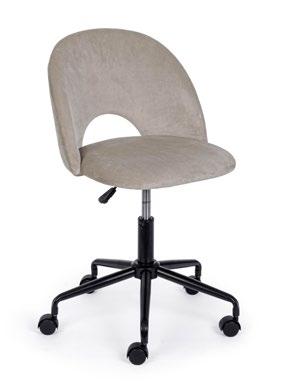 Base in nylon ø65 cm. Ruote in nylon. Imbottitura in schiuma poliuretanica densita’ 24 kg/m3. Rivestimento in tessuto 100% poliestere. Scocca e braccioli in plastica (PP). Meccanismo butterfly: regolazione altezza e oscillazione seduta. Capacita’ max di carico: 150 kg. Da assemblare. | Ø65 cm nylon base. Nylon wheels. Polyurethane foam filling: 24 kg/m3 density. 100% Polyester fabric cover. plastic (PP) shell and arms. Butterfly mechanism: adjustable height and rocking seat. Maximum payload: 150 kg. To be assembled.