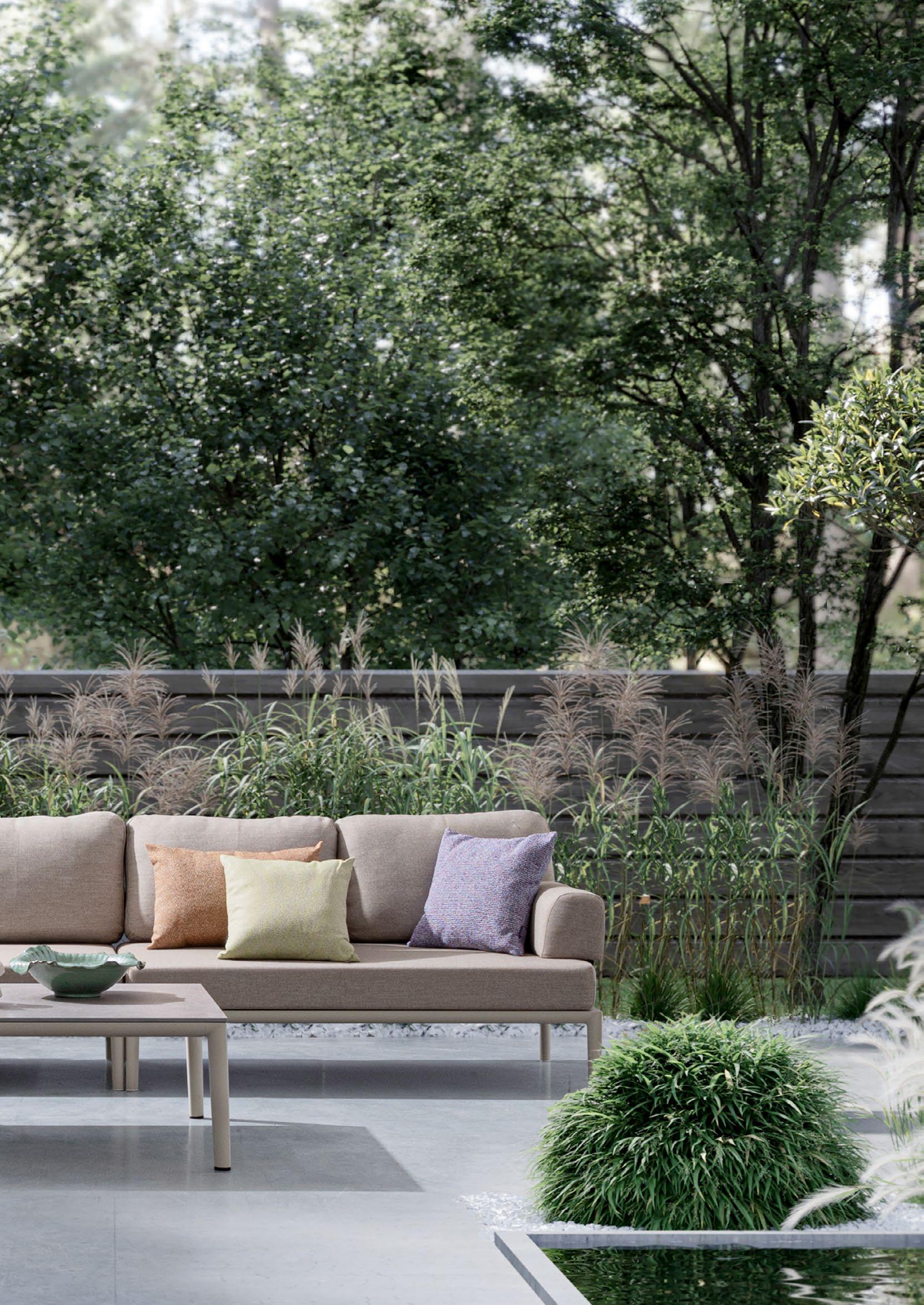Research, in materials - such as sintered stone or recycled materials - new, unprecedented materials that explore innovative technologies to interpret the most current trends of tastes that increasingly pursue a direction linked to naturalness and sustainability. And then search for styles. Outdoor 2024 is a tribute to the variety of ideas, inspirations, and creativity that give rise to different, always unique and special designs. The result is a vast variety of assortments and configurations that perfectly match the multifaceted soul of the outdoor space: large or small spaces, pool sides, terraces, porches, courtyards. Models that are often modular, modern and versatile. Finally, Outdoor 2024 is a common and shared quest for an ever more authentic relationship with the world outside. The colours that recall the earth, the textures of textiles that evoke its substances. Stems, barks, leaves. Sand, waves, mountain profiles. And then lines, signs, weaves and combinations: nature constantly evoked and redesigned in armchairs, sofas, tables and stools. /