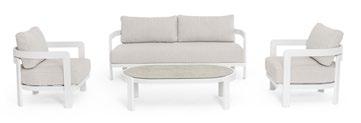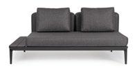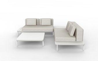 Ein dichtes Geflecht aus Olefin-Seil. Eine Linearität, die sich in der Einfachheit der Struktur aus lackiertem Aluminium fortsetzt. Und dann die Kissen, groß, weich und alle mit abnehmbaren Bezügen. Pardis ist eine Einladung: sich zu setzen, sich zu unterhalten, sich einen Moment des absoluten Nichtstuns zu gönnen.