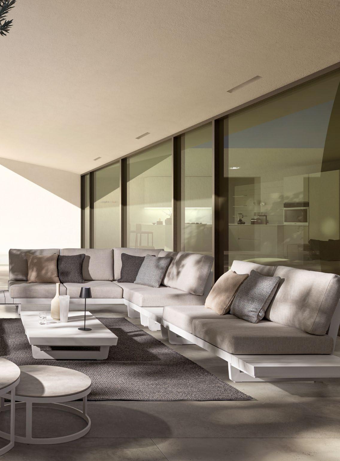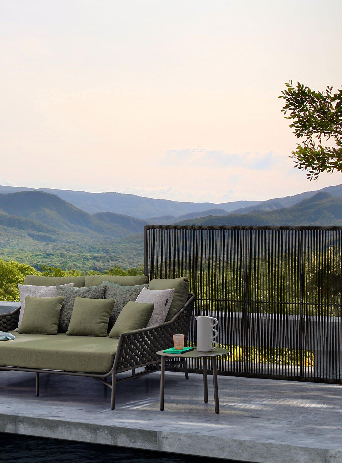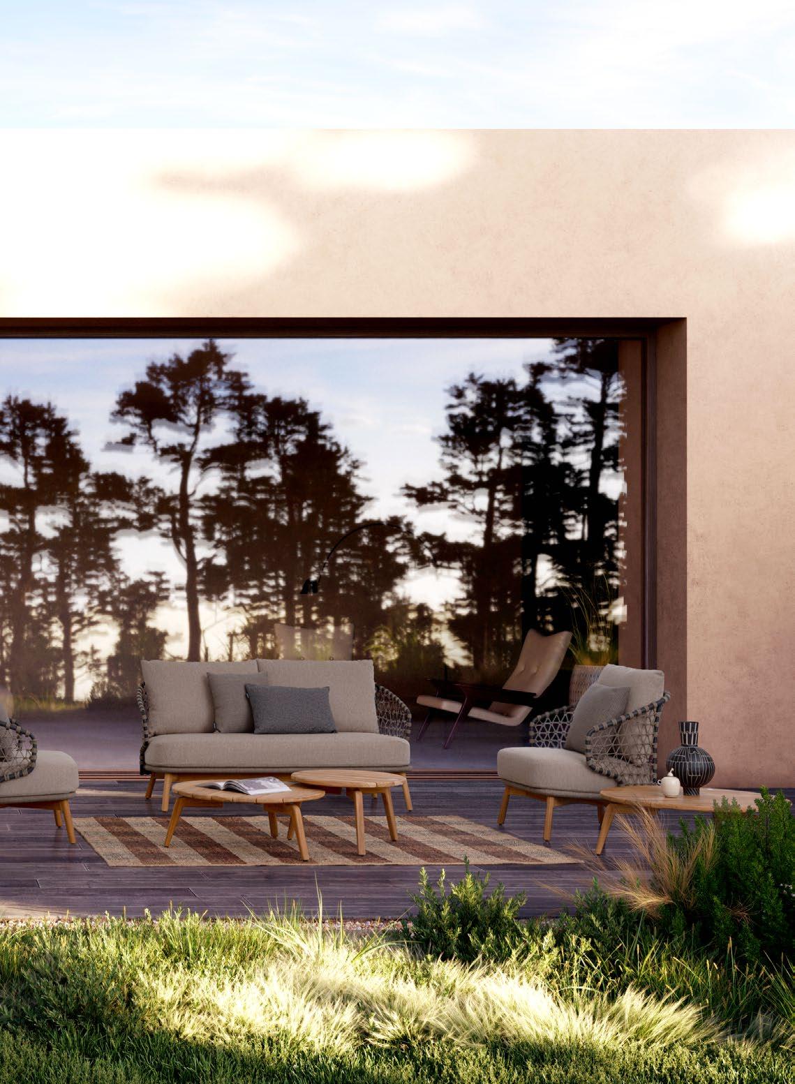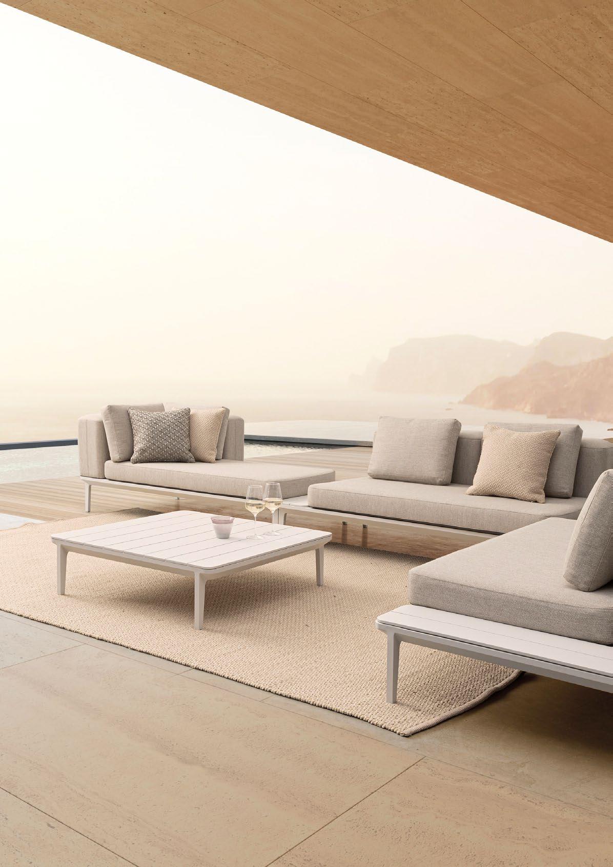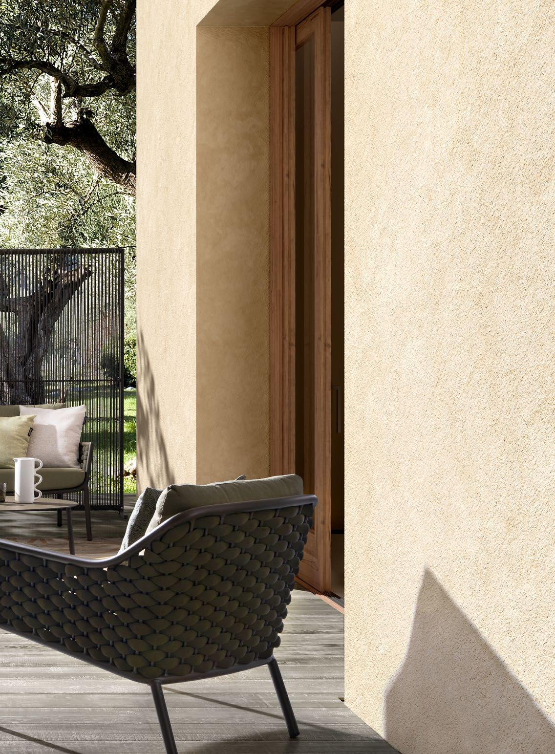 Die Atmosphären des Mittelmeers. Die Erde, das Meer, das Licht. Das zarte Grün der Olivenbäume, die warmen Farbtöne des Steins. Sie werden lebendig in einer Möbelkollektion mit einem leichten, luftigen, vielseitigen und einladenden Charakter. Eine Einladung zur Sorglosigkeit, zum Komfort, zur Entspannung.