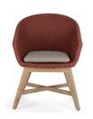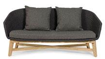 Un tressage dense en corde d’oléfine. La linéarité qui se prolonge dans la simplicité de la structure, en aluminium peint. Et puis les coussins, larges, doux et tous déhoussables. Pardis est une invitation : à s’asseoir, à converser, à se laisser aller à un moment d’oisiveté absolue.