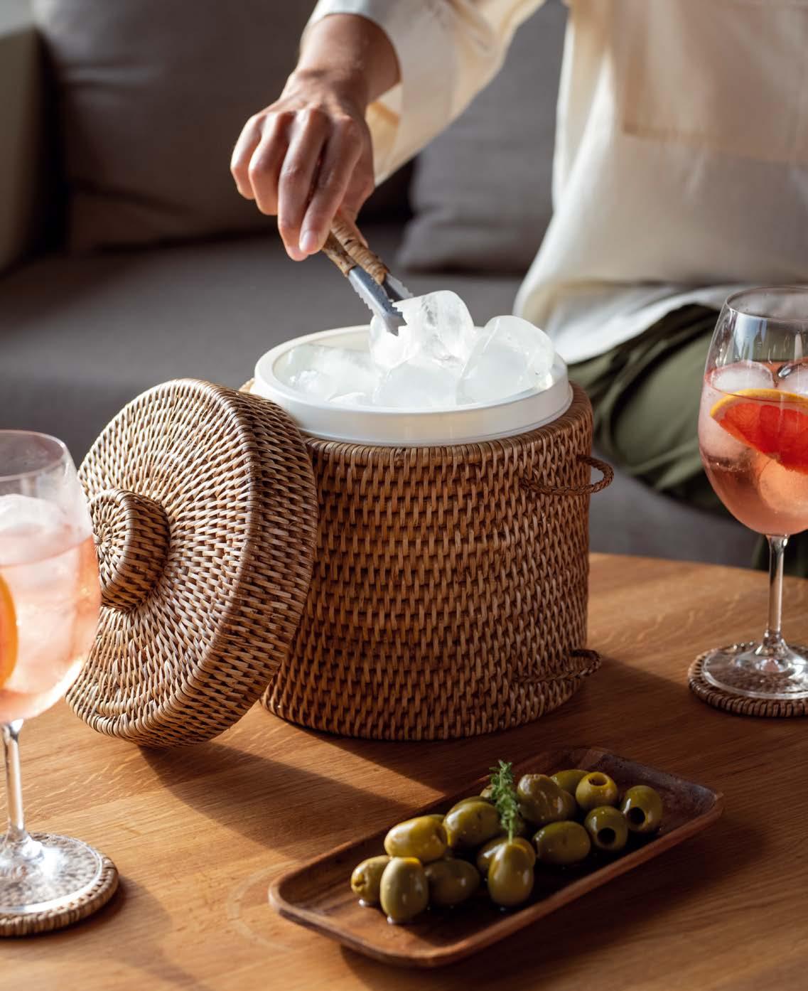 MS73186 - Rattan ice bucket with tongs Ø20x25 cm