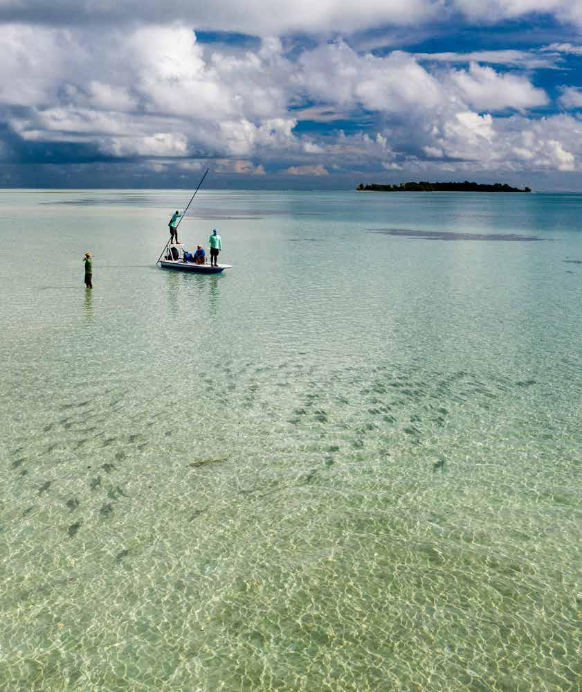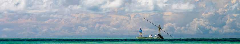 Astunning tropical paradise including more than 115 islands, the tiny African country of the Seychelles is barely visible on a world map. Upon arrival, however, anglers are welcomed to a place that is wild and untamed, with pristine flats and crystal-clear waters vast beyond measure. Considered by many anglers to be the finest saltwater flats fishing destination on the planet, the shallow waters of the Seychelles offer unbelievable wade fishing and access to an astonishing and exotic number of saltwater species. When you factor in the sheer diversity of species, the seclusion of the fisheries, the jawdropping beauty, and the consistently good action, you get a destination that is truly unlike any other. All of our Seychelles destinations and offerings — including the landbased, out-island lodges and the live-aboard mothership operations — are managed and staffed by some of the most experienced and professional guides in the business. Collectively, we consider the guides in the Seychelles to be among the best we’ve encountered anywhere in the world.