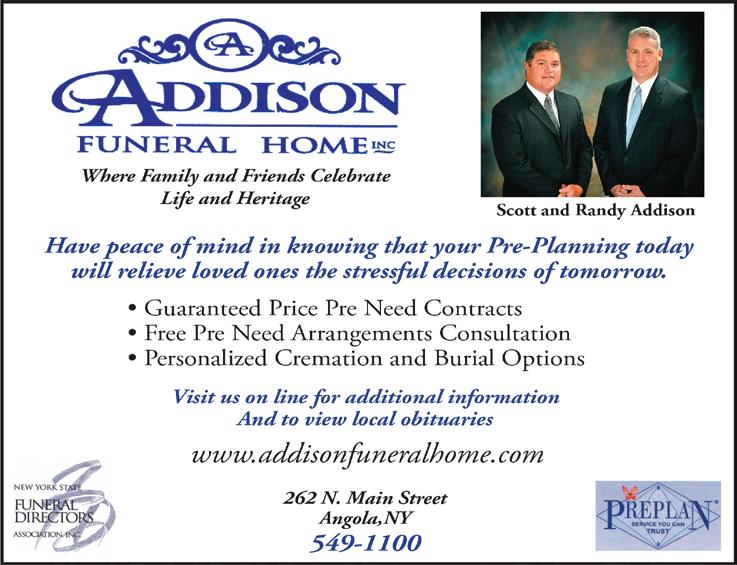 The Erie County 60+ Stay Fit Nutritional Program is o ered M-F at noon. Cost is $3.50 per meal. One week advance registration is required, call (716) 947-0974.