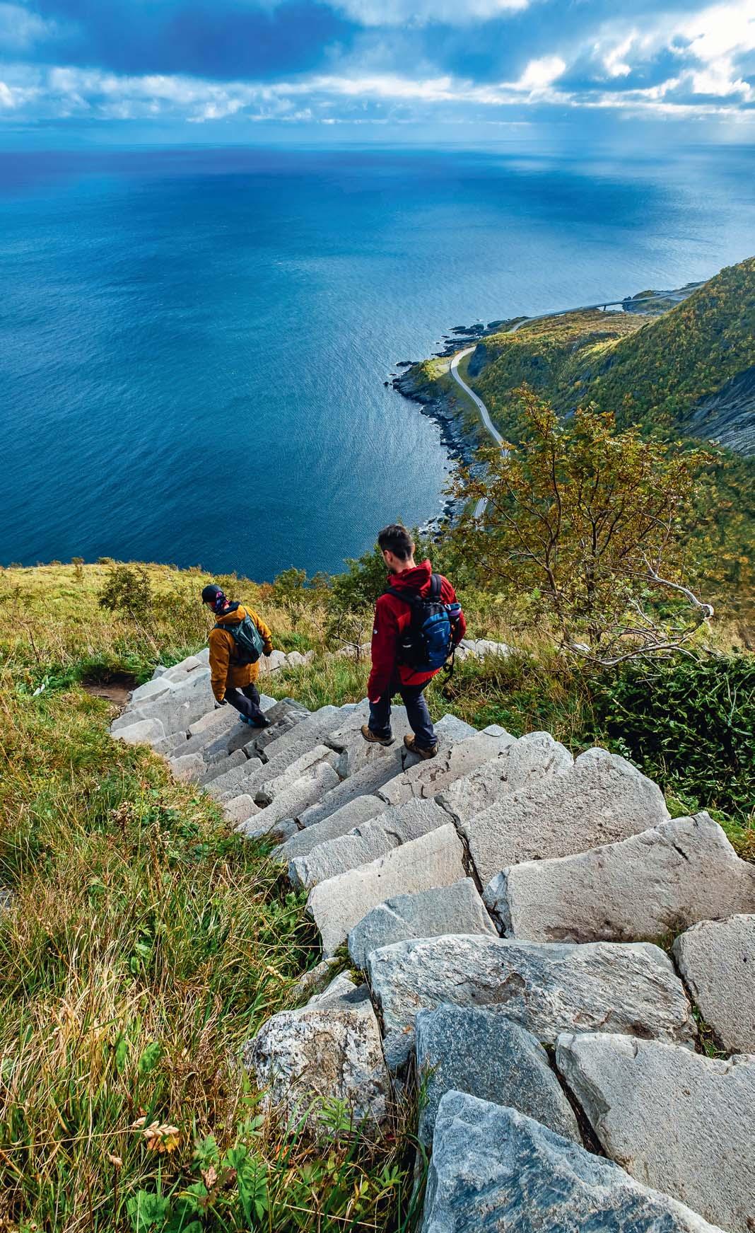 Den nahezu senkrecht verlaufenden Kilometer gilt es zu überwinden. Dank der Hilfe eines Teams nepalesischer Sherpas wurde der Pfad allerdings vollständig mit rund 2000 Granitstufen ausgebaut. So entstand eine gigantische, bisweilen atemraubende steile Treppe, die in den Himmel zu führen scheint. Oben angekommen, eröffnet sich ein XXL-Panorama. Und man hat schon jetzt das Gefühl, zu fliegen.