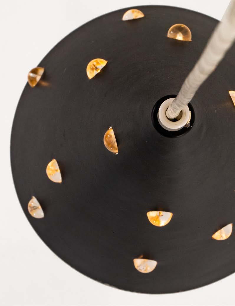 01 . Paavo Tynell (1890-1973) Suspension Laiton, verre et métal laqué Édition Idman Estampillée 'Idman MADE IN FINLAND' Modèle créé vers 1958