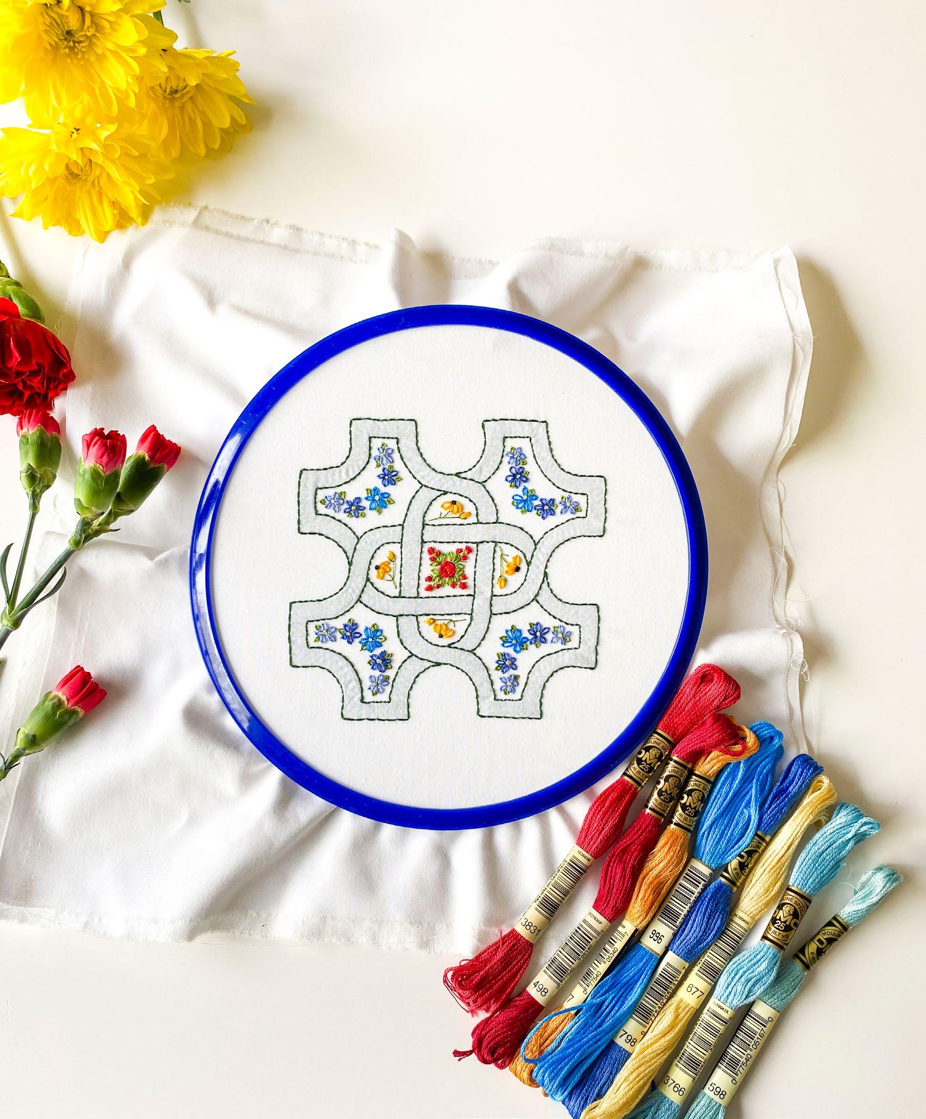 This embroidered wall art is perfect for gifting it for a birth, christening, birthday or any other such customs. It can also be gifted as a token of good luck, embroidering it on many household items like a cushion, a towel, a table centerpiece etc. And feel free to use your favourite colours too. – Iryna