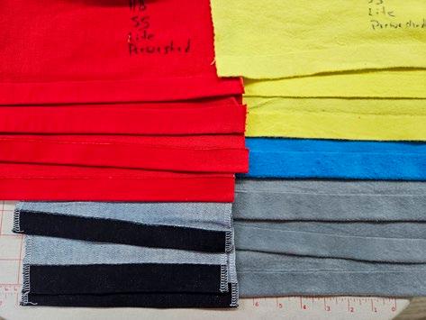 Here's a sample of a non-woven, fusible, black interfacing used to stabilize the front facing of a blouse. Serging the edges is a great way to finish off the edge.