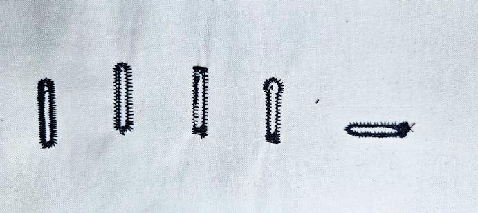 I used a forty-weight thread for my samples. If you think the coverage is sparse, you can change the width and length of the stitches. Be careful; you don’t want the buttonhole to be too bulky. Again – this is why we make samples.