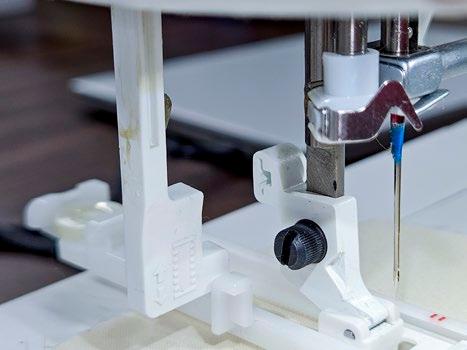 Lower the Buttonhole Lever and ensure it’s behind the stopper on the buttonhole foot. This step will ensure the buttonhole length is correct for the button.