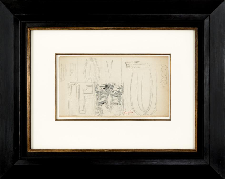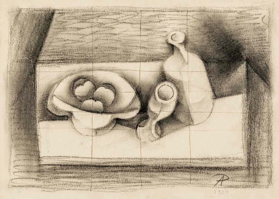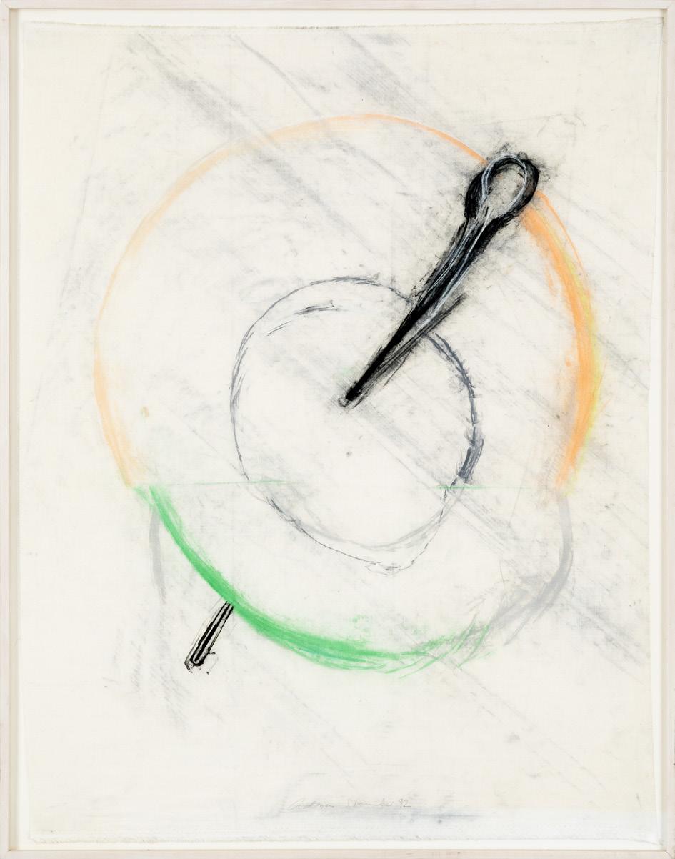 Dílo „ Z cyklu Magie věcí “ je vizuálně silnou autorčinou pozdější prací provedenou technikou frotáže, jež po desetiletí patřila mezi stěžejní položky jejího výtvarného jazyka. Adriena Šimotová zde, zcela typicky pro počátek devadesátých let, věnovala svou pozornost mlčenlivým „přátelům člověka“ – věcem. Ústředním prvkem výtvarného procesu se tu stává jejich dotýkání se formou frotáže, kterou autorka následně dokreslila. Základní černou uhlokresbu v podobě „otisku“ sofistikovaně doplnila kontrastem dvou intenzivních barev, oranžové a zelené, čímž akcentovala základní tón papírového podkladu, reprezentujícího absolutno, k čemuž odkazuje vše existenciální. Syrovost přímého otisku objektivní skutečnosti se bravurně propojuje se ztajeností, pouhou tušeností a barevnou pastelovou magií, za niž by autorku jistě pochválil největší mistr této techniky, Edgar Degas.