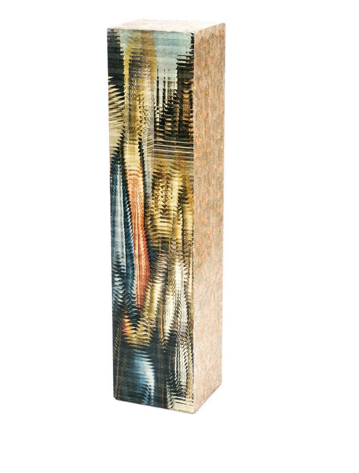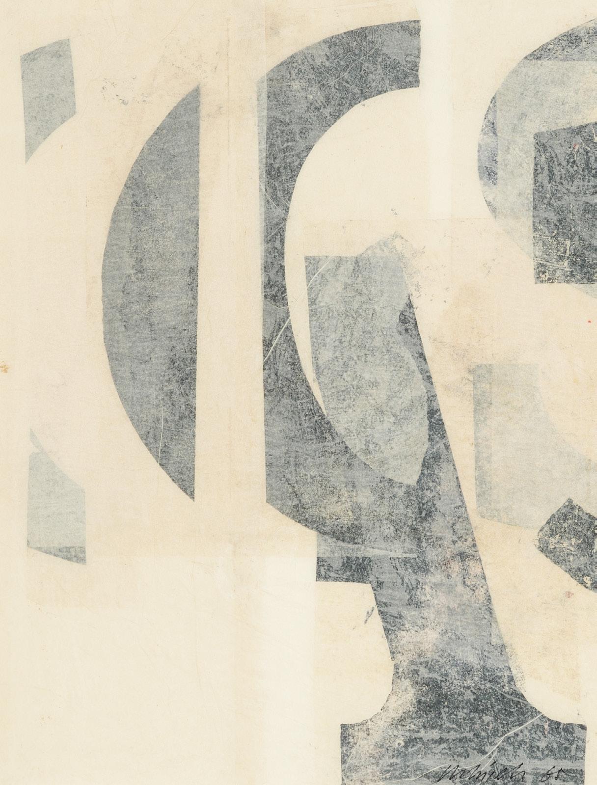 V době sedmdesátých let, Jiří Hilmar – jeden z nejvýznamnějších českých umělců op-artu – začal kromě papíru a kartonu používat i jiné materiály jako látky, šňůry a dřevo. Vznikly tak zcela nové práce. Zde nabízené dílo náleží do reliéfů vertikálně uspořádaných šňůr, které Hilmar tvořil dvojího typu. Buď byly šňůry v pravidelných rozestupech, či těsně jedna za druhou, navoskovány a posléze fixovány na podložce – jak je tomu v případě zde nabízeného díla. Anebo byla jedna vrstva šňůr fixována k podkladu a druhá vrstva přes ně volně visela, v dalším prostorovém plánu. Zde prezentované dílo je skvělou a velmi silnou ukázkou Hilmarovy tvorby.