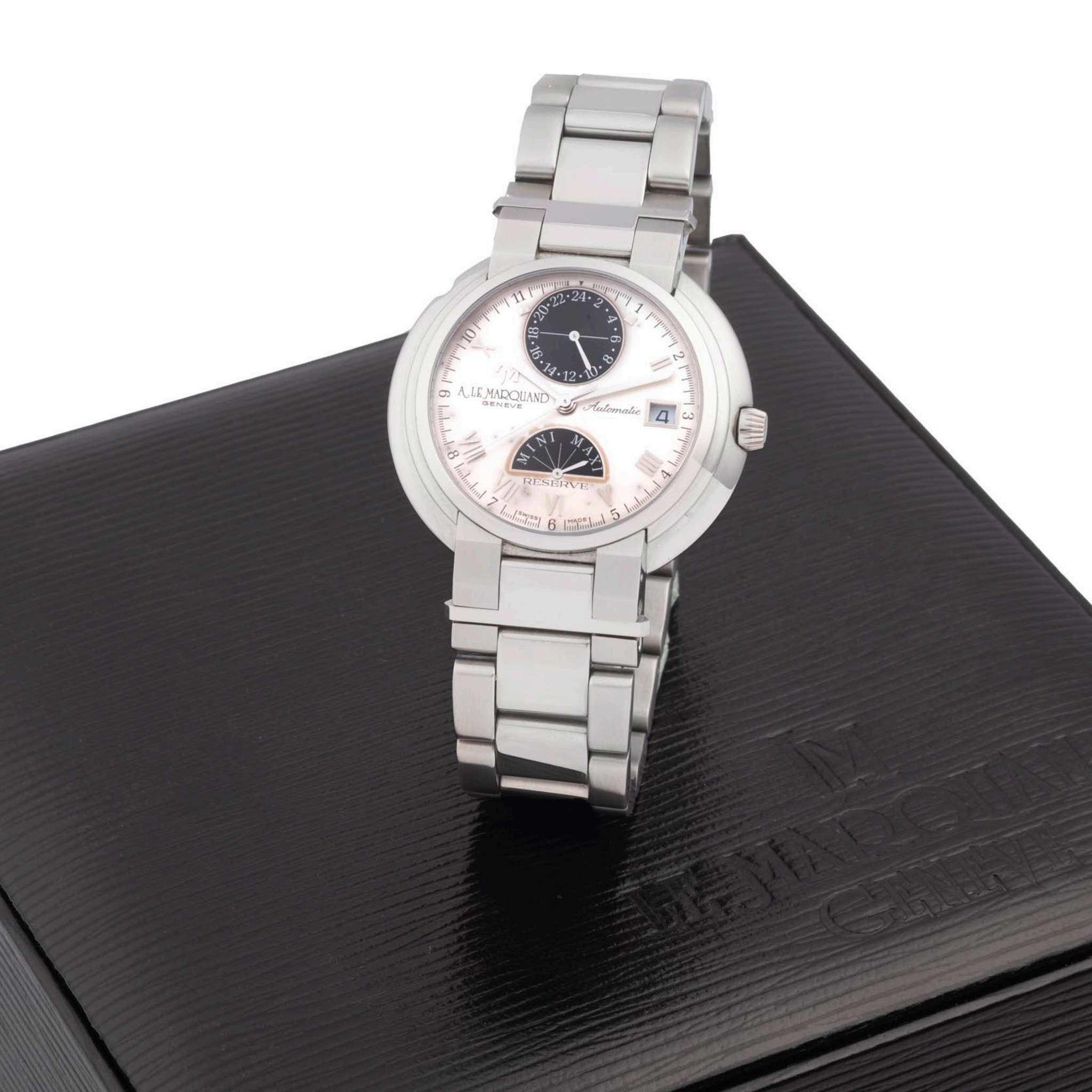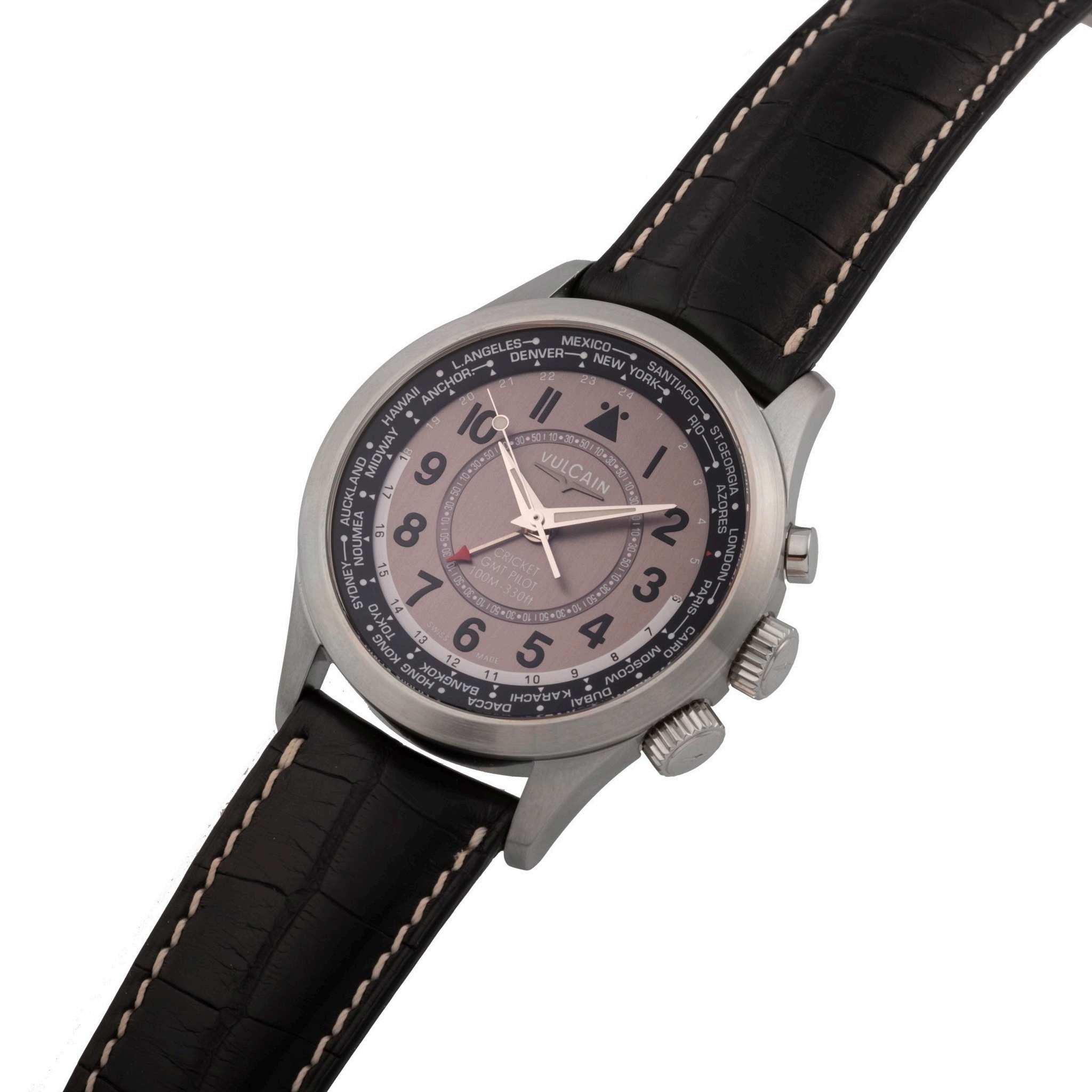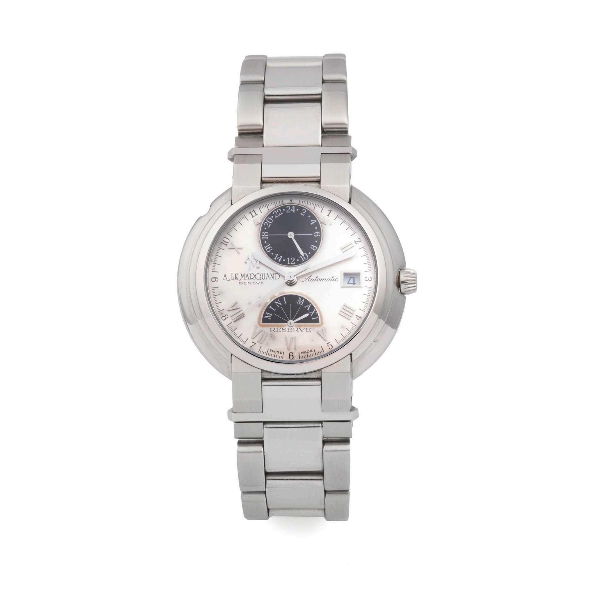 A fine, stainless steel, self winding water resistant wristwatch, two time zone, center seconds and date, screwed down case back.