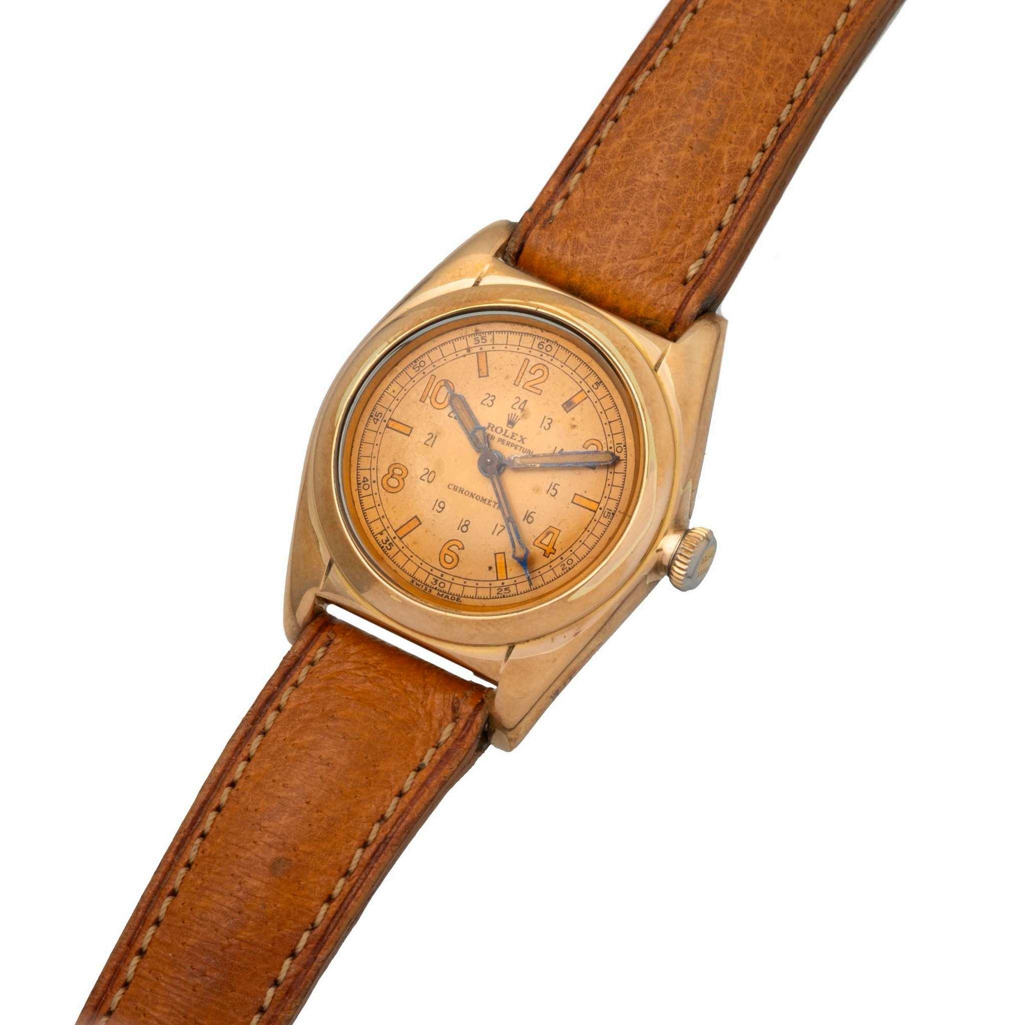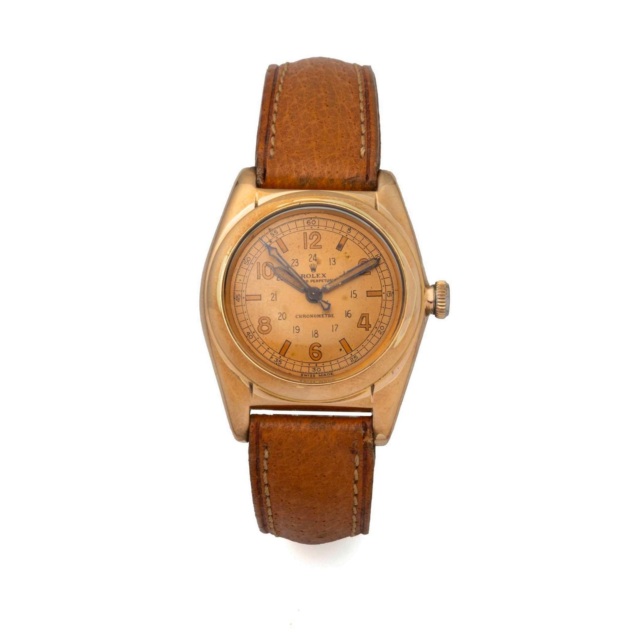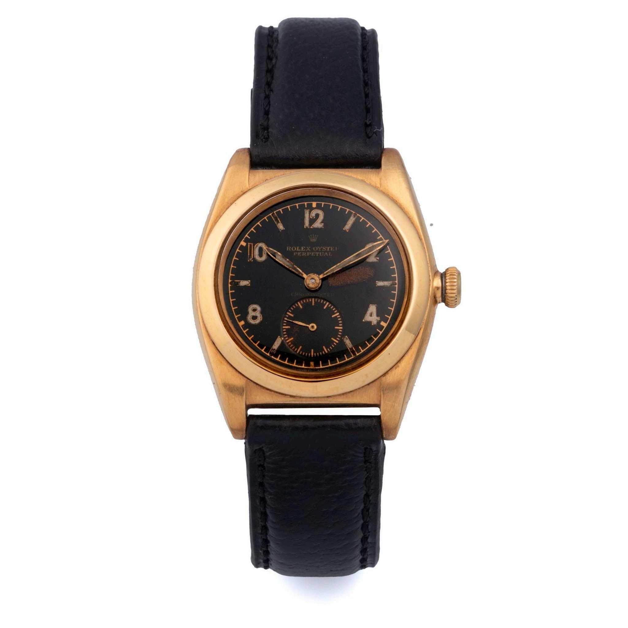 ROLEX, SWITZERLAND, REF. 3131, BUBBLEBACK, CHRONOMETER BLACK DIAL, 18K YELLOW GOLD
