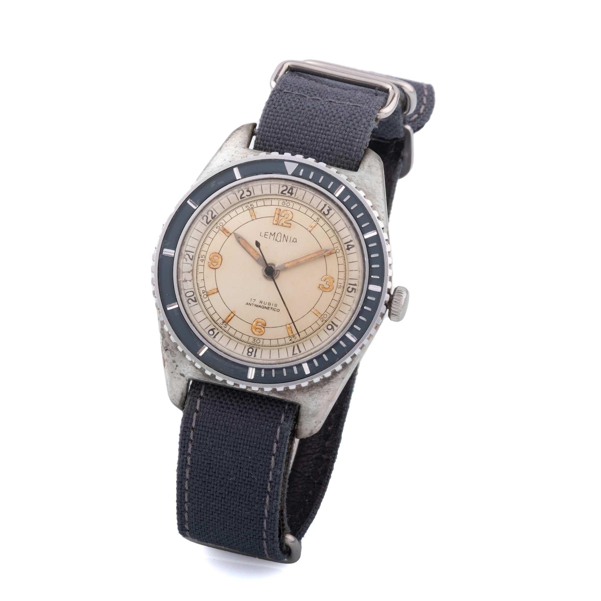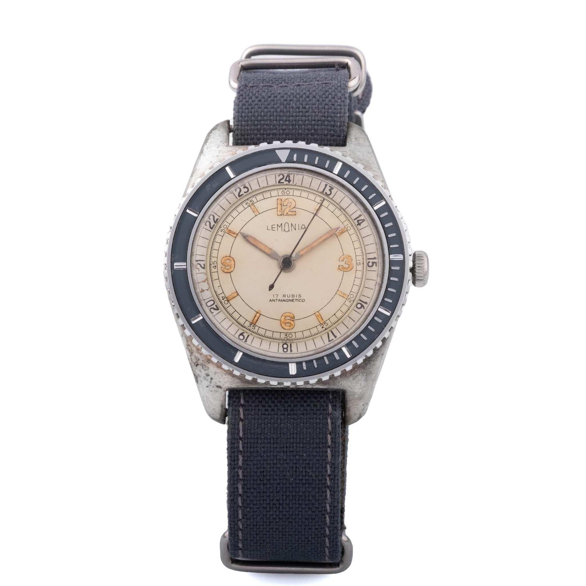 A fine, stainless steel, self winding diver’s wristwatch with center second.