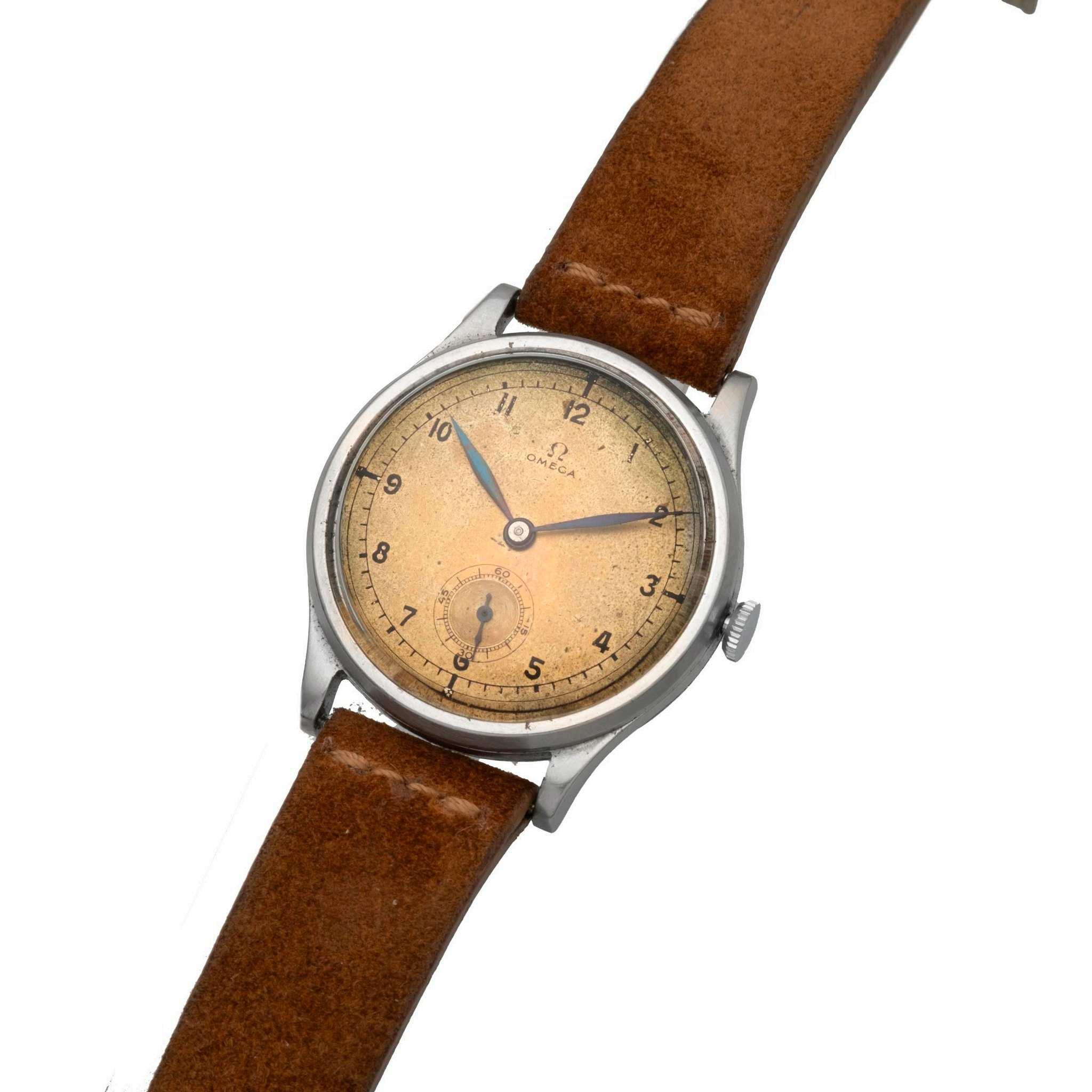 A fine and rare, gold plated, manual wind water resistant wristwatch with second at six o'clock