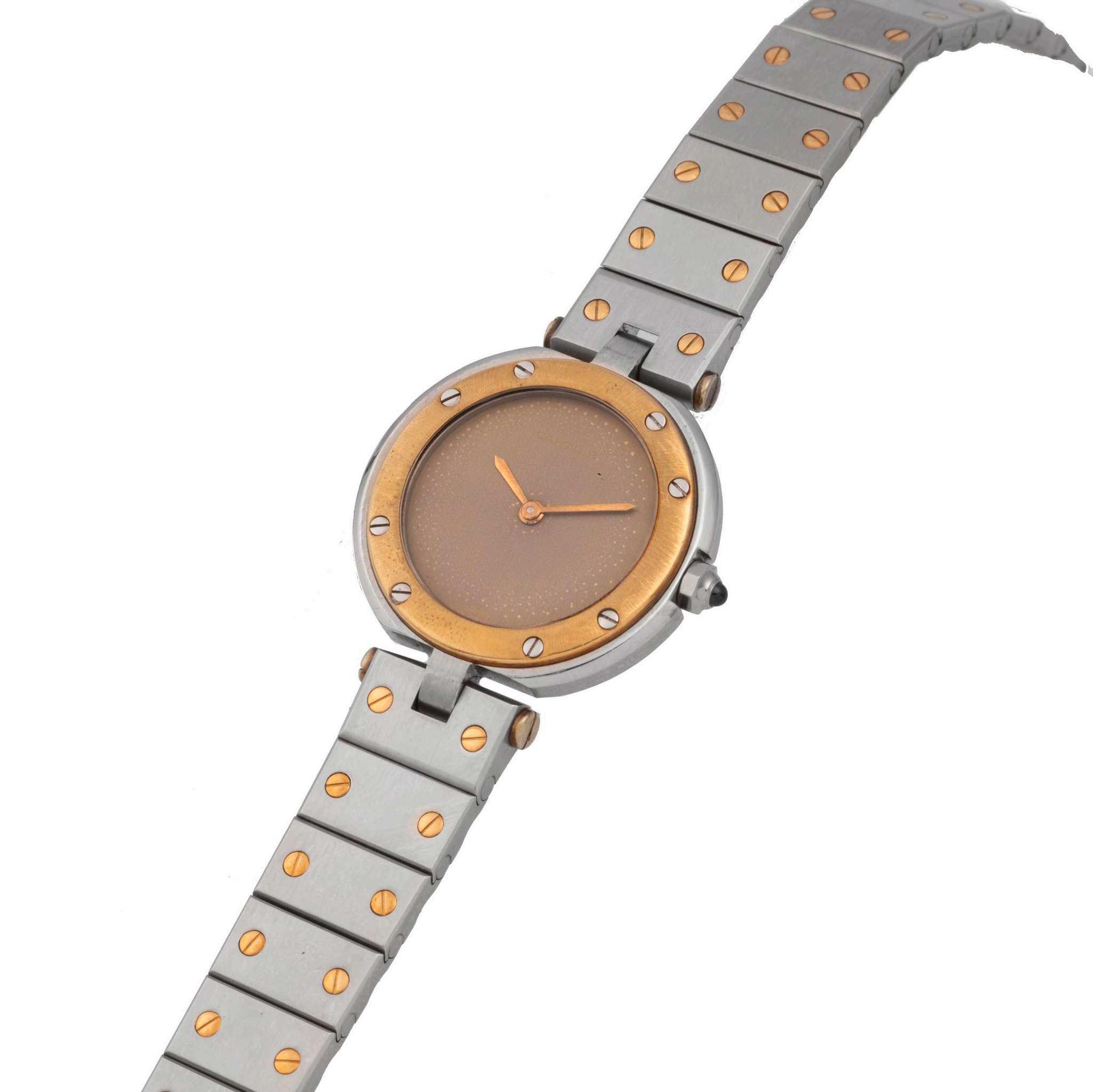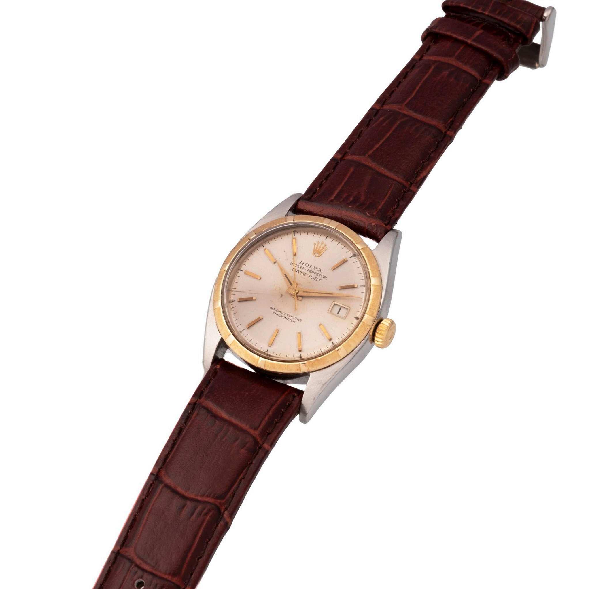 A very fine, stainless steel and gold, self winding water resistant wristwatch with date at 3 o'clock.