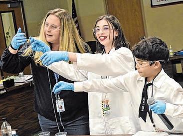 Lee Road Elementary School students donned their white lab coats and rubber gloves while attending a recent Levittown Board of Education meeting to present a STEAM-based project.
