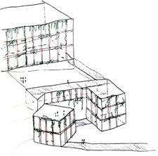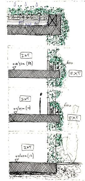 Cámara de aire que separa a las plantas bajo rasante del muro de contención preexistente, protegiéndolas de la humedad y las infiltraciones de agua, que son recogidas en la planta inferior mediante drenes