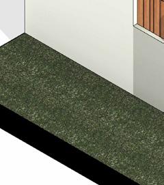 La losa de hormigón preexistente es recrecida mediante una capa de poliestireno extruido, que queda superiormente rematada por un pavimento a base de lamas de chopo oscurecido.