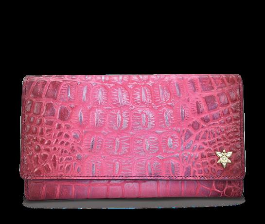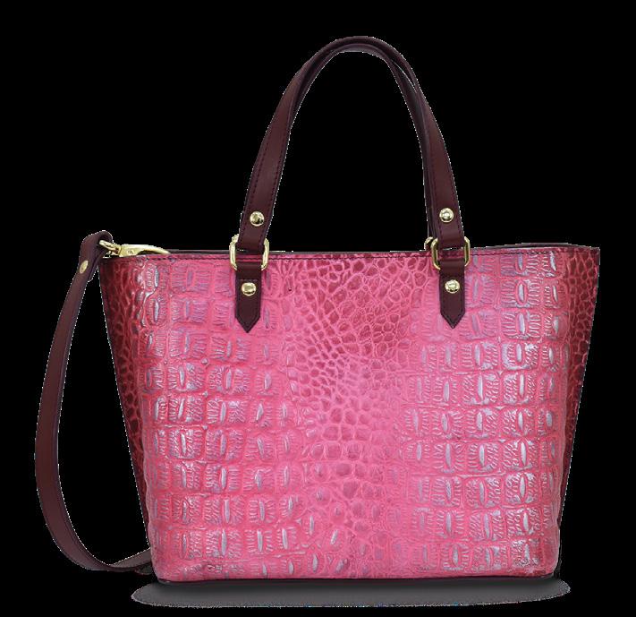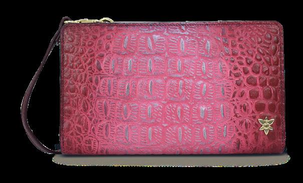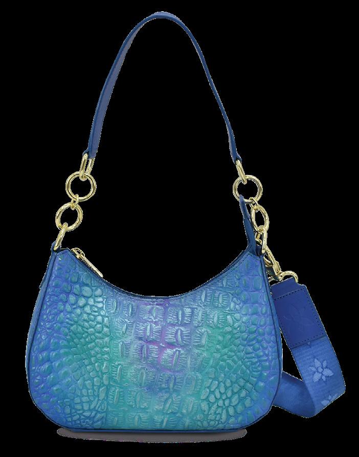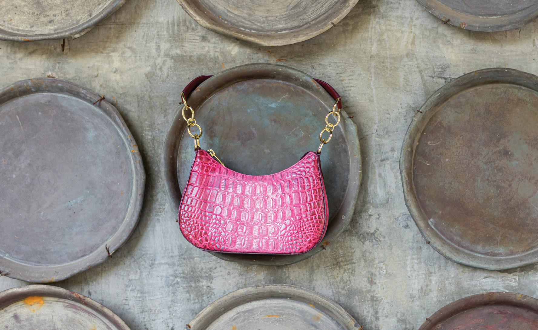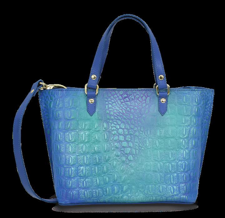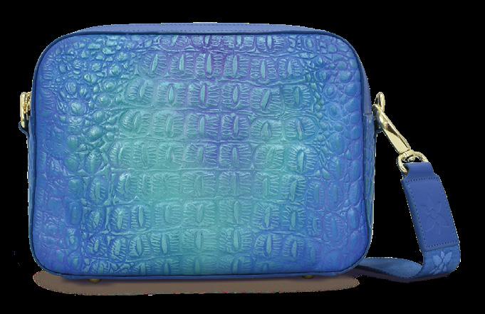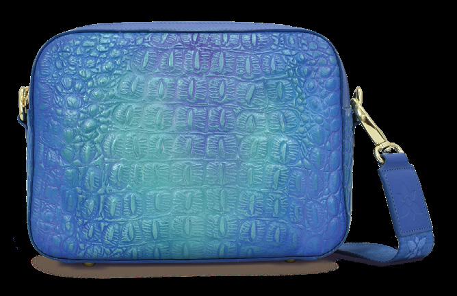 Crafted from genuine croc embossed leather, this new hand-painted collection comes to life with an array of stunning colors and a metallic effect that gives it a dazzling shine.
