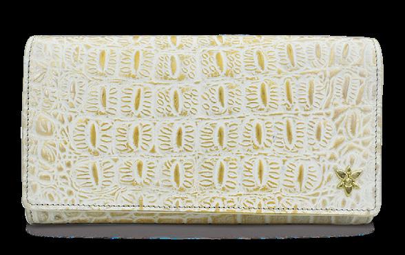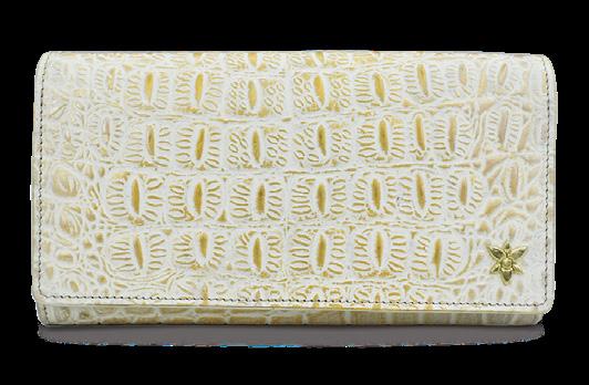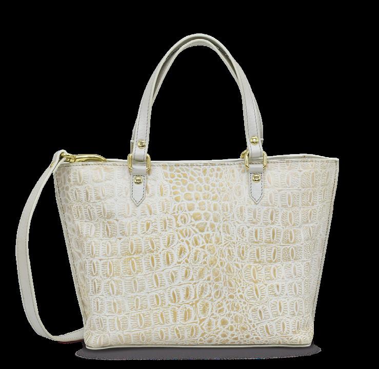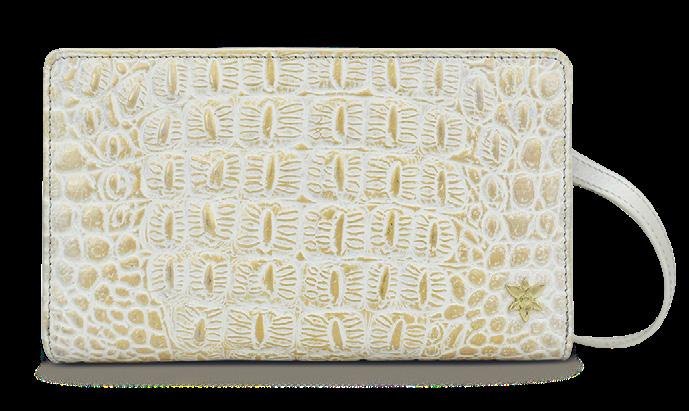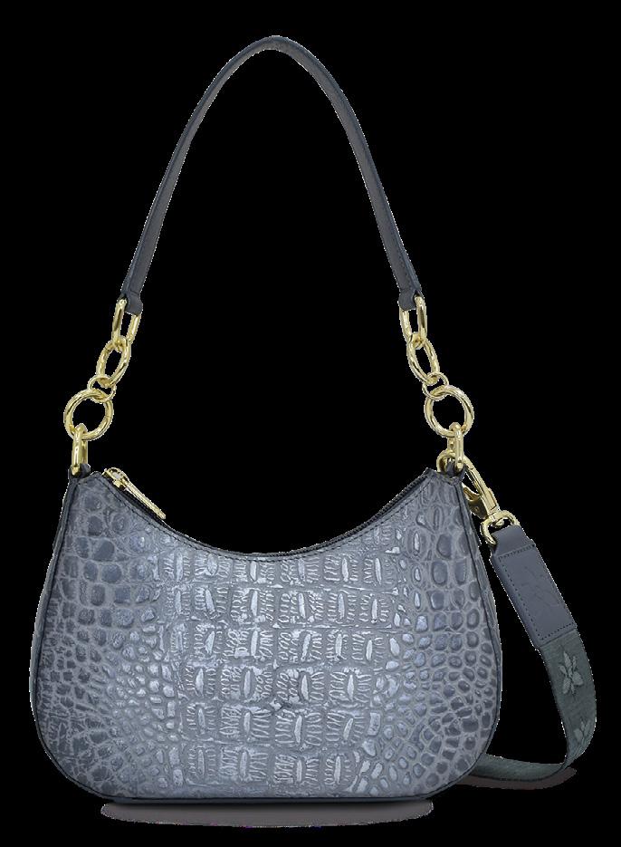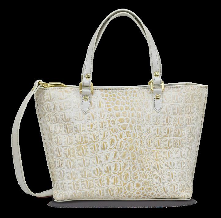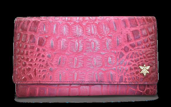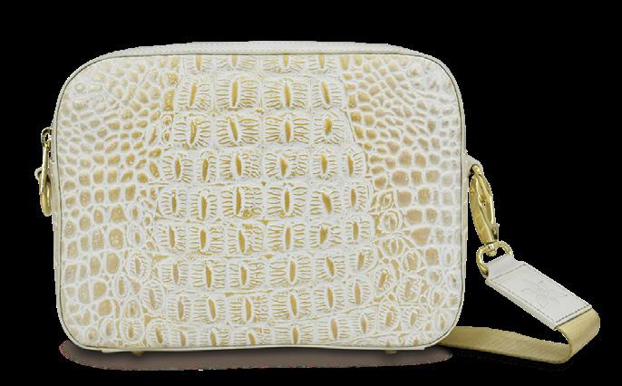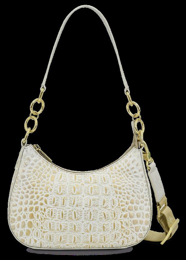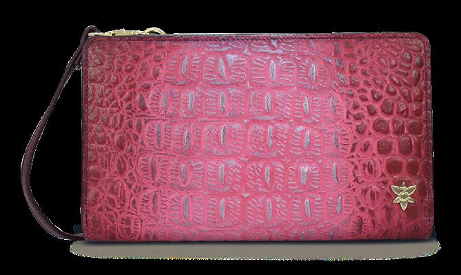 Crafted from genuine croc embossed leather, this new hand-painted collection comes to life with an array of stunning colors and a metallic effect that gives it a dazzling shine.