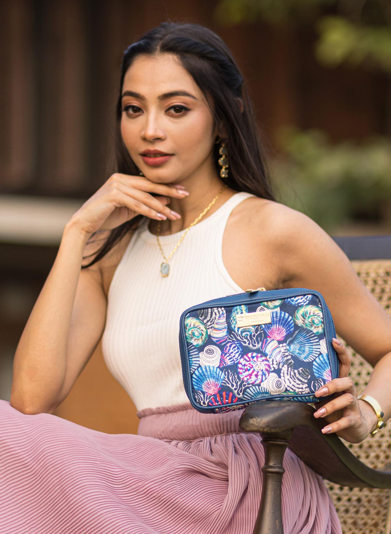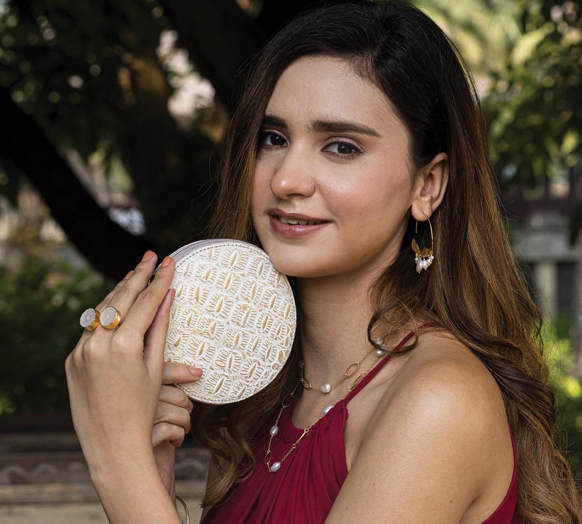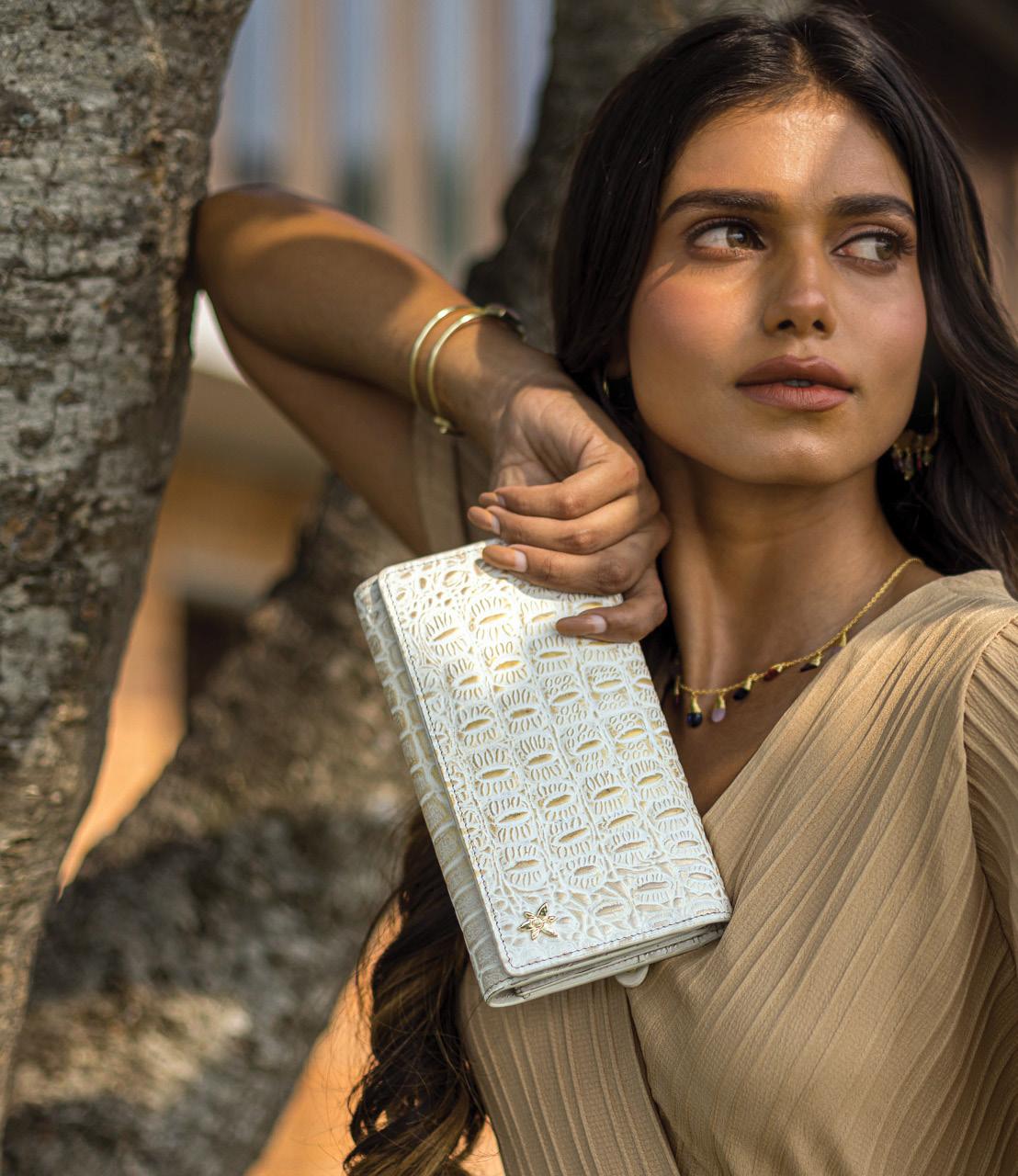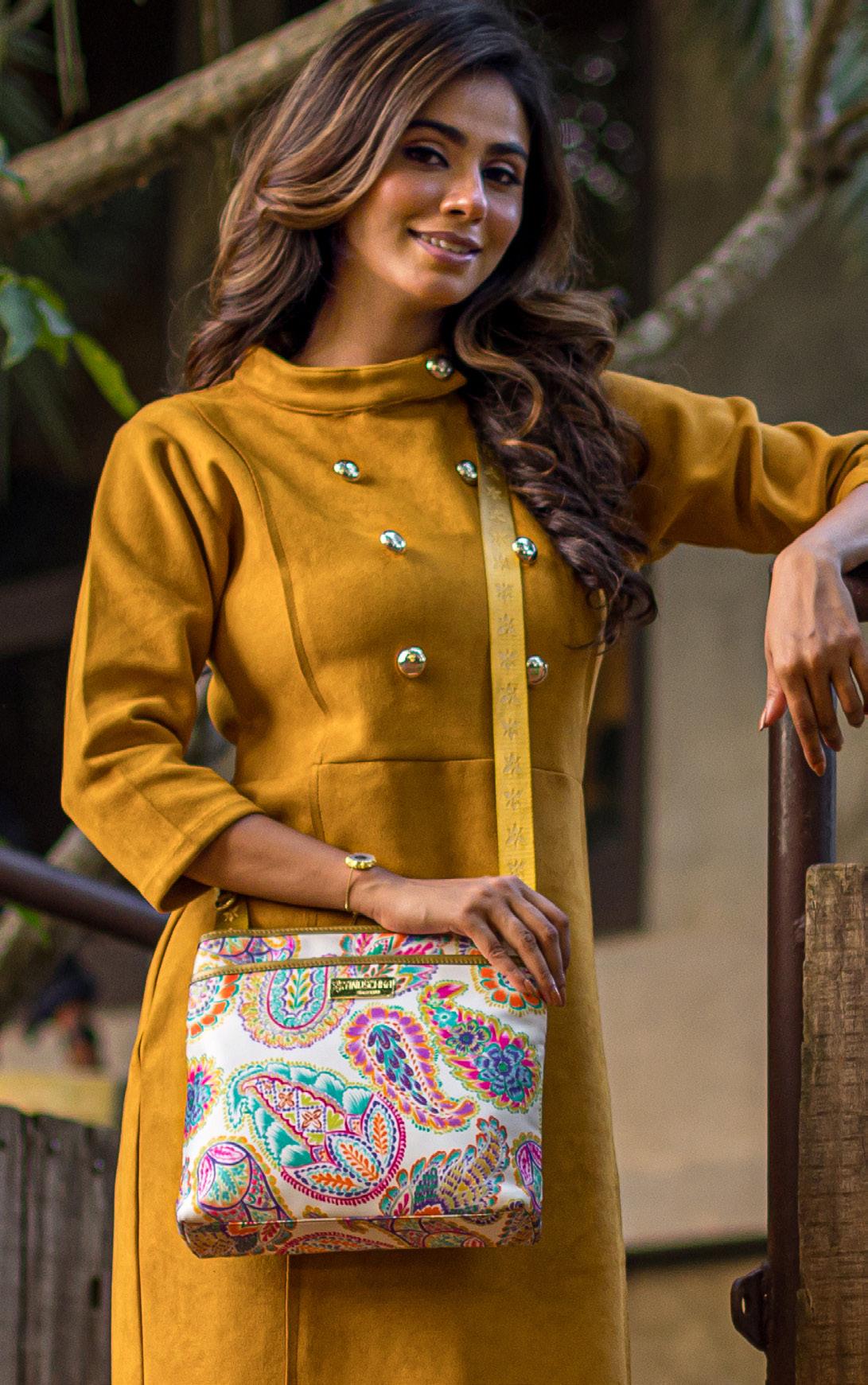 Designed by Bhaskar, this petite and stylish beauty comes with a short strap and a chain strap and goes easily from day to night.