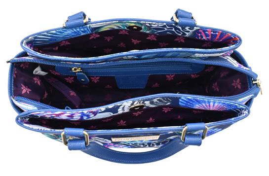 Perfect for daily use, this bag features a top zip entry to a spacious interior with a zippered wall pocket and two multipurpose pockets. Rear full length zippered pocket.