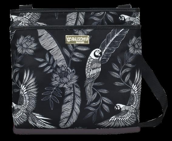 Strap: Adjustable crossbody strap with maximum drop 26”.