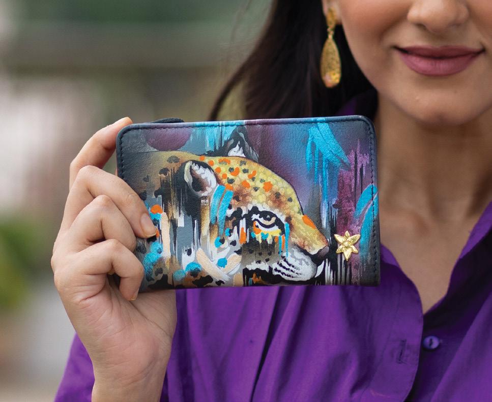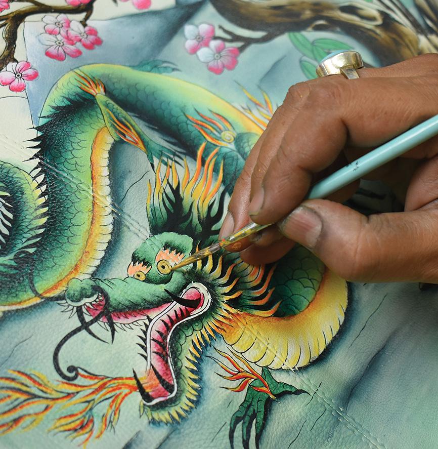 Anuschka hires economically challenged young adults, armed with a basic sense of art and eagerness to learn the trade. They are taught the intricacies of painting on leather in the family’s workshop. Over the years, these skills empower them while preserving the rich heritage of art on leather.