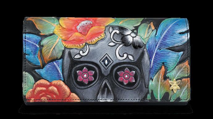 This vibrant wallet will make it easy to organize all your essentials in boho elegance. It has a flap open entry with adjustable snap closure, six full length slip pockets, five full length zippered pockets, two wall zippered pockets, twelve card holders and an ID window. Comes with a special lining to protect the RFID chips in your credit and debit cards from illegal scanning. Accordion style gusset opens 5.5” wide.