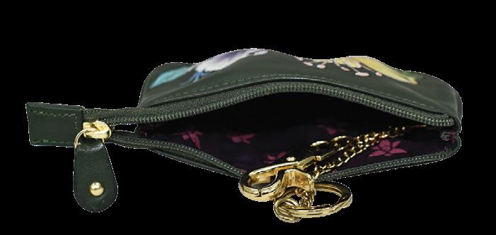 This French inspired pouch has a vintage charm and will clip easily onto any bag. One dog hook, one key fob. Full length coin pocket.