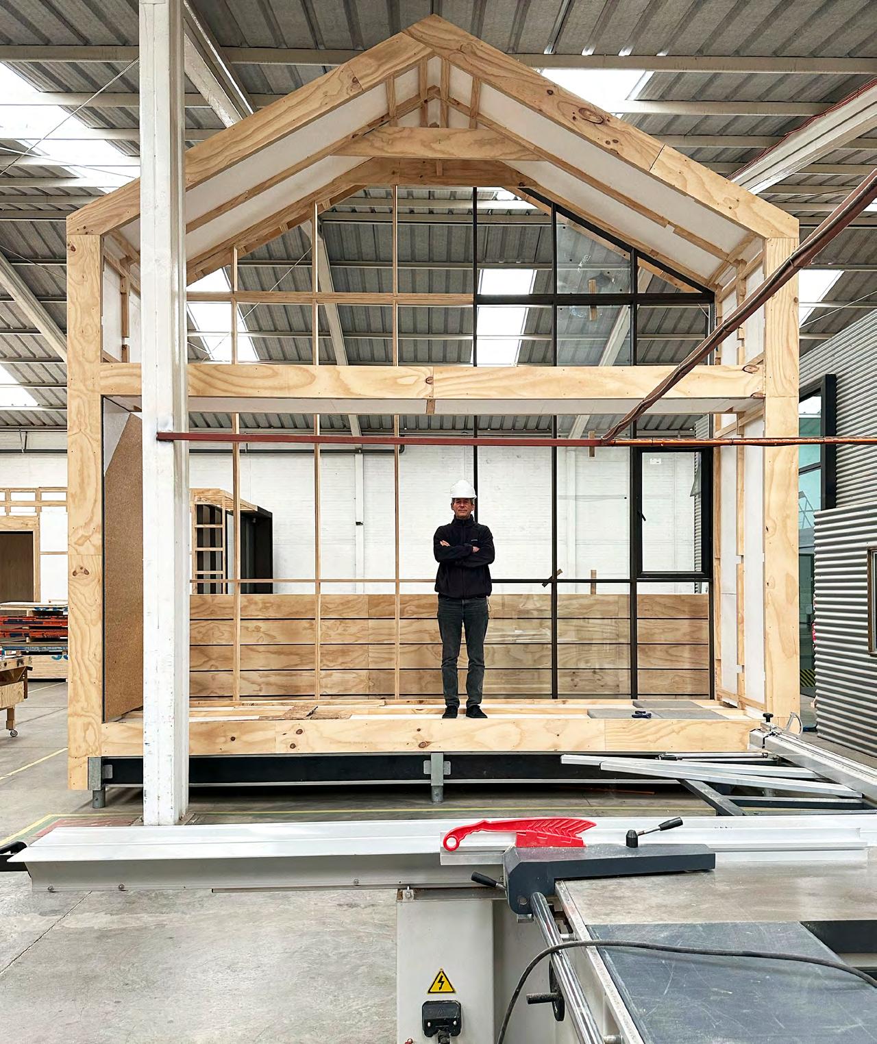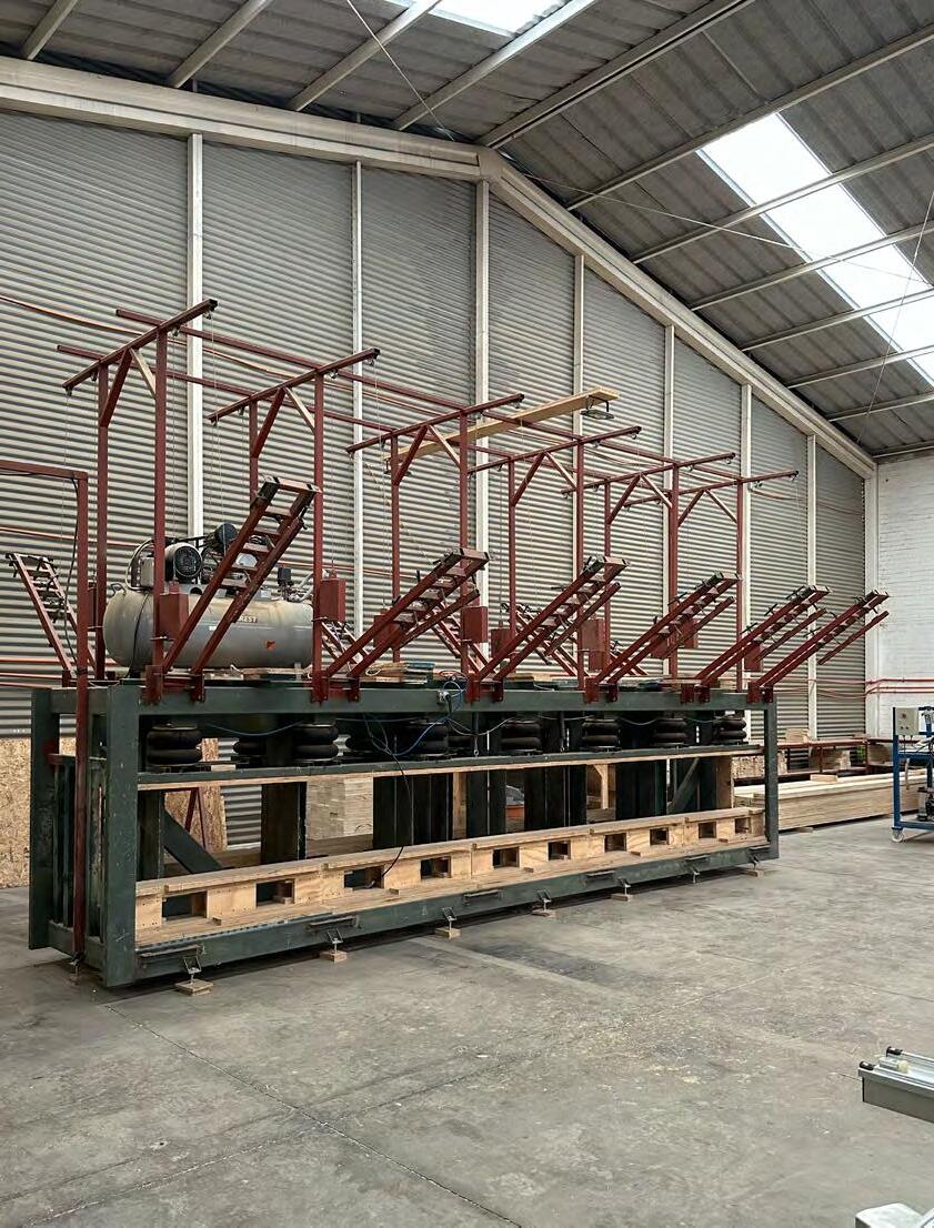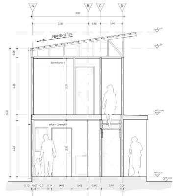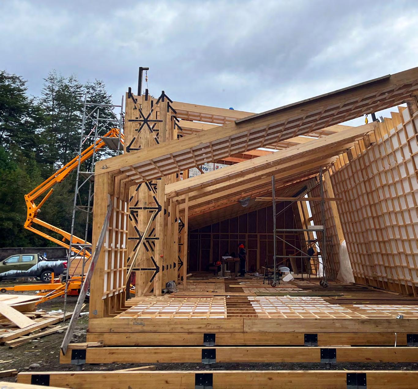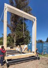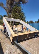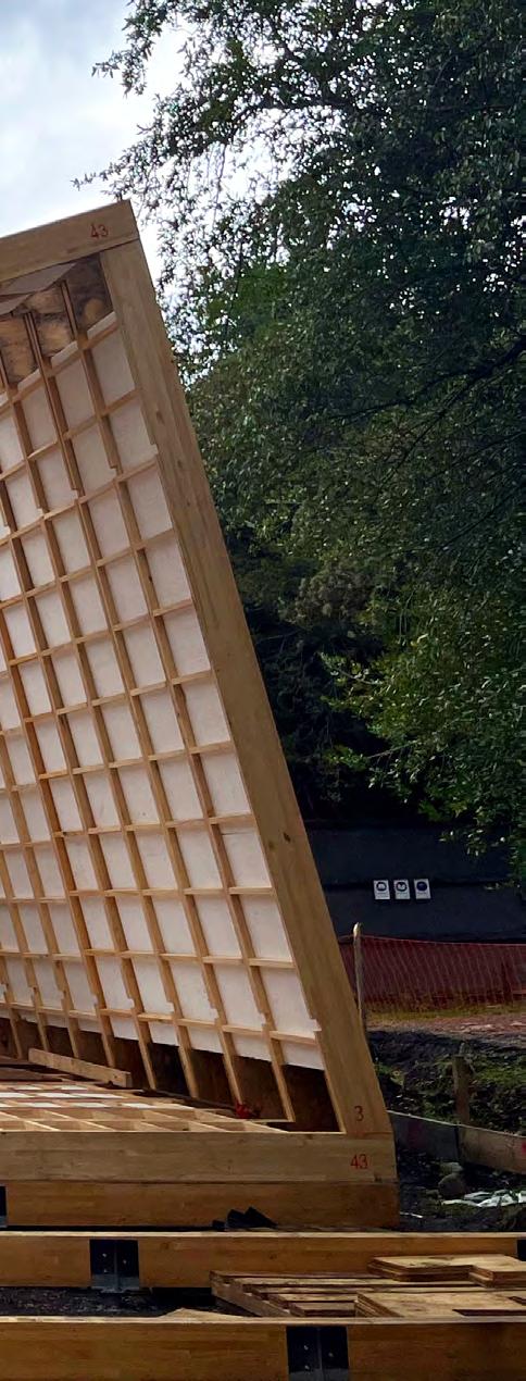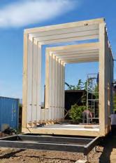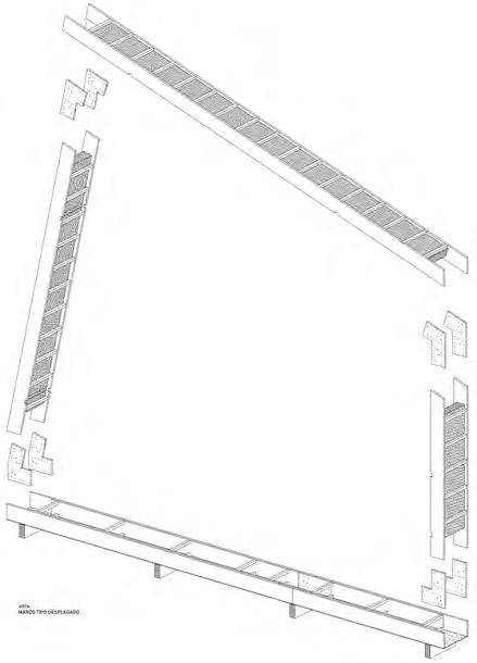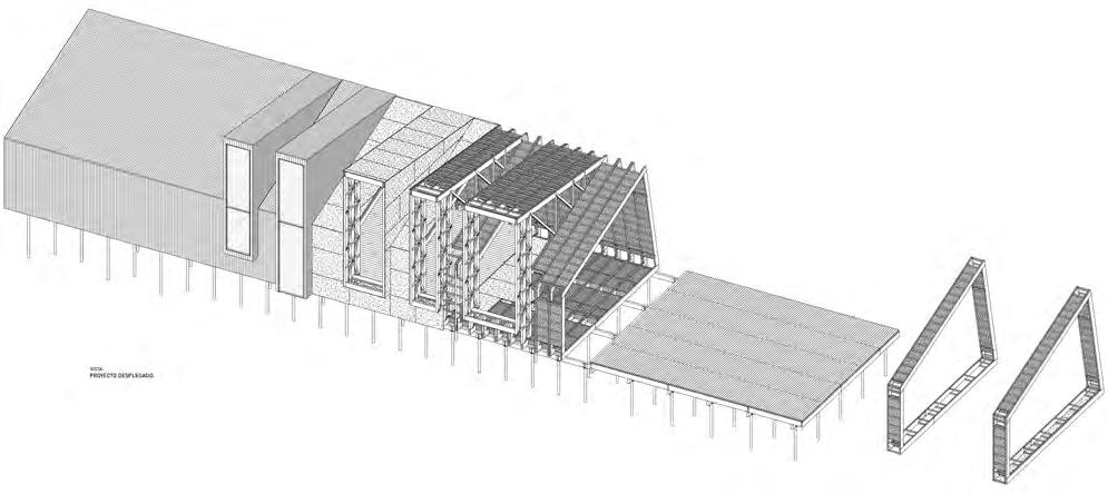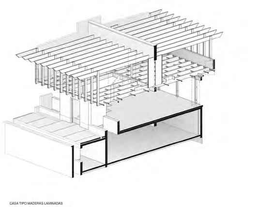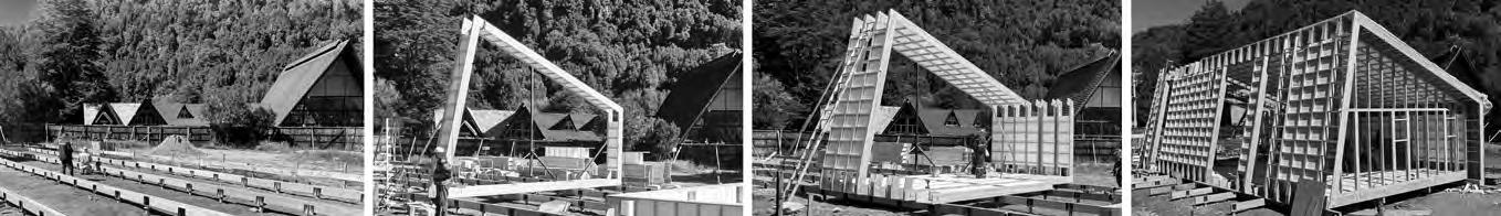 The technology used in the project is based on the system developed by the Furó Company using prefabricated structural laminated wood frames with EPS insulating blocks, which are assembled consecutively every 60 cm to configure the volume longitudinally.