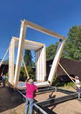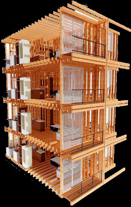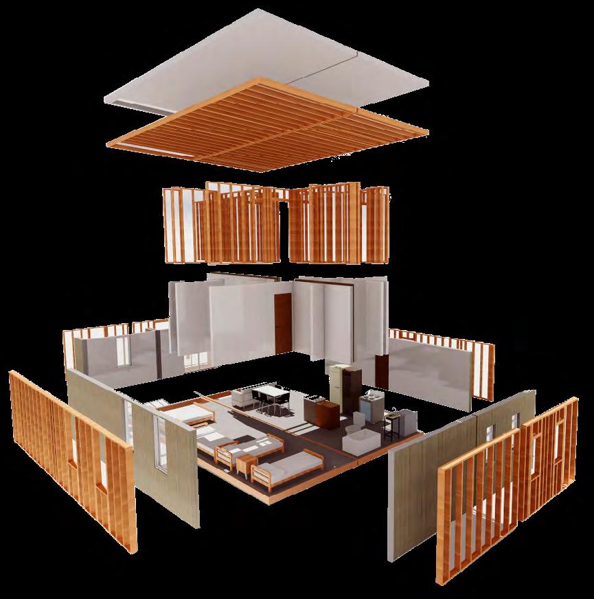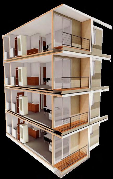 The prefabricated timber system offers construction with low C02 emissions and at the same time considerably reduces debris, noise, and air pollution during construction.!