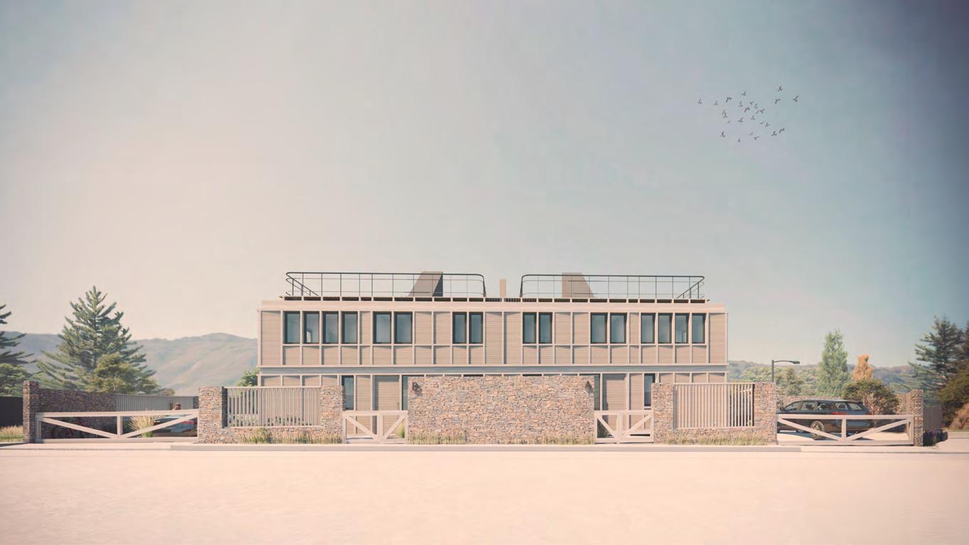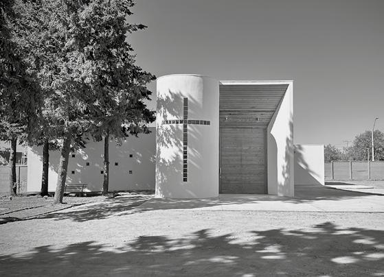 This cinerary consists of a series of functional spaces for funeral ceremonies, including a cremation room, a chapel, offices, and services, with a total surface area of approximately 350 m2. Its architectural design is based on an industrialized approach, where 80% of the entire building and 100% of its walls, foundations, and interior partitions are made of prefabricated reinforced concrete panels. These panels, which include pillars and internal chains to give them strength and rigidity, make it possible to adapt to the curved shapes that characterize the building's architecture.