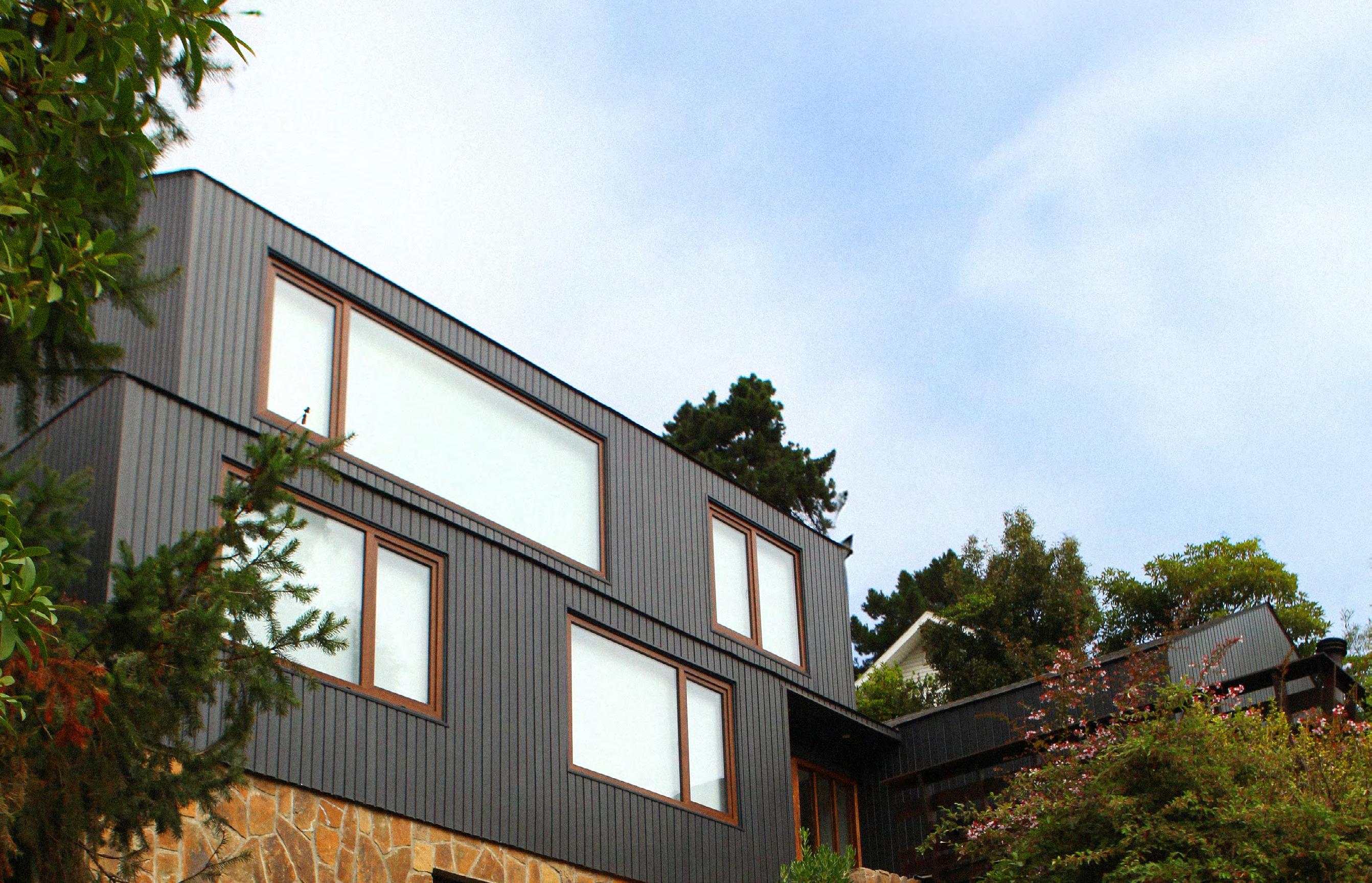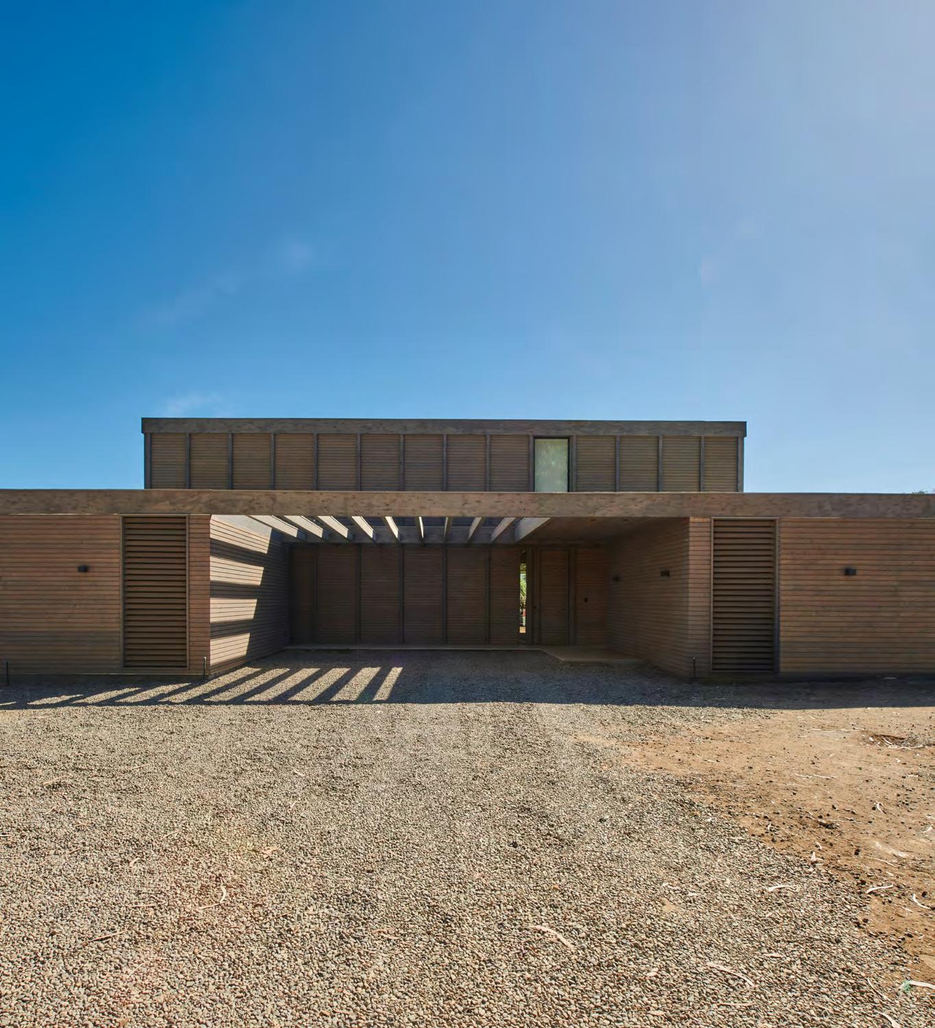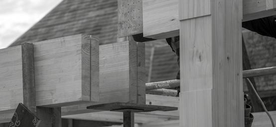 The project was made entirely of wood and combined two construction systems: post and beam and framed panels. The post and beam system was made of glued laminated timber (GLT) and was mainly used on the perimeter of the house to achieve transparency.